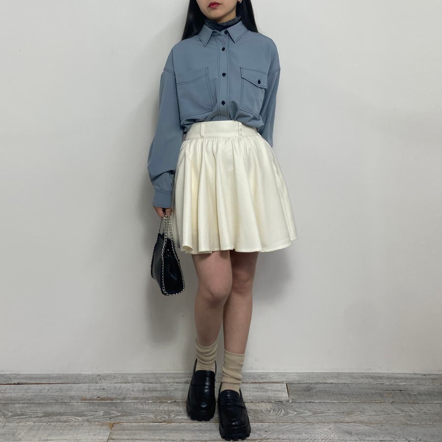レーヨン混のすこしとろみがある素材感なので、ボトムにINしてトップスとして使うのもおすすめ。