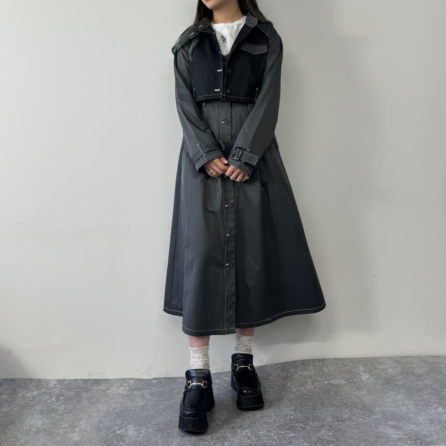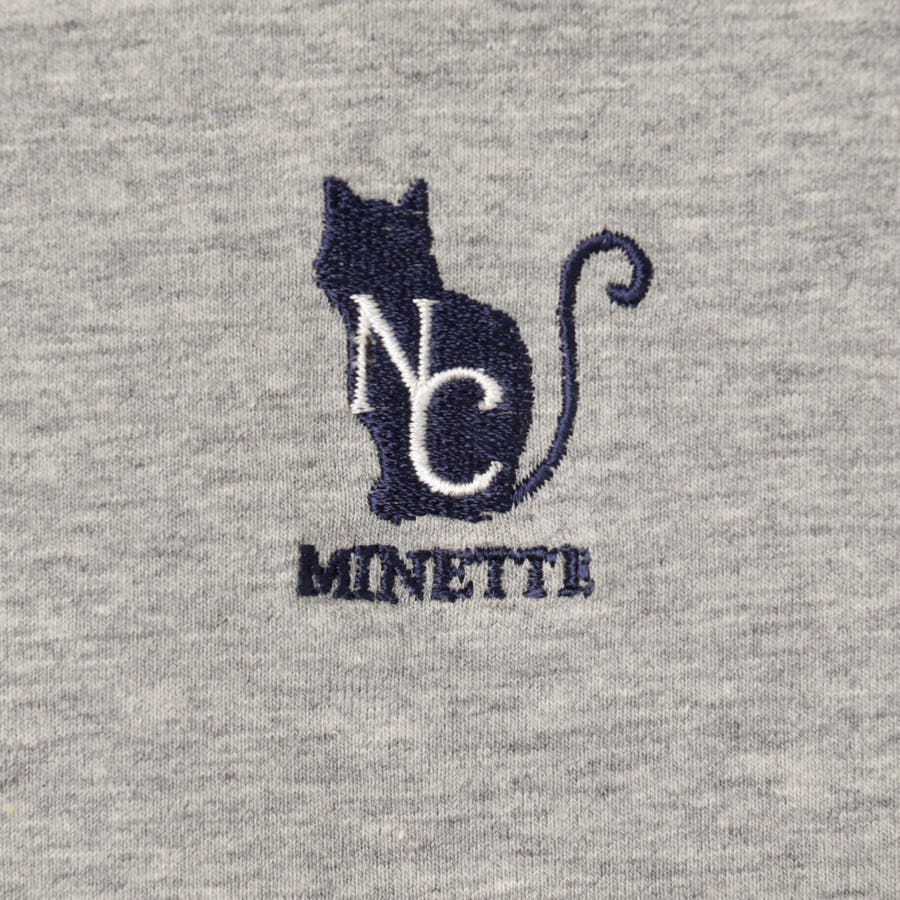 襟元の配色が目を惹くデザインで、羽織りやジャンスカに合わせた時にも刺繍が見えるようフロントにネコ刺繍を施しました。