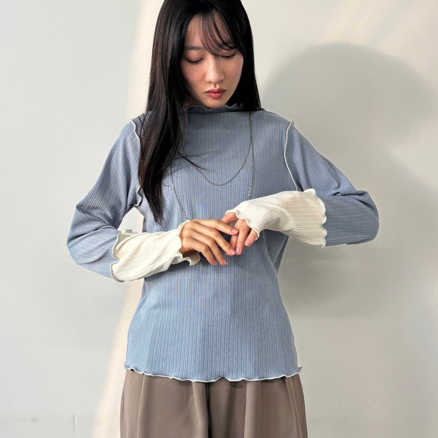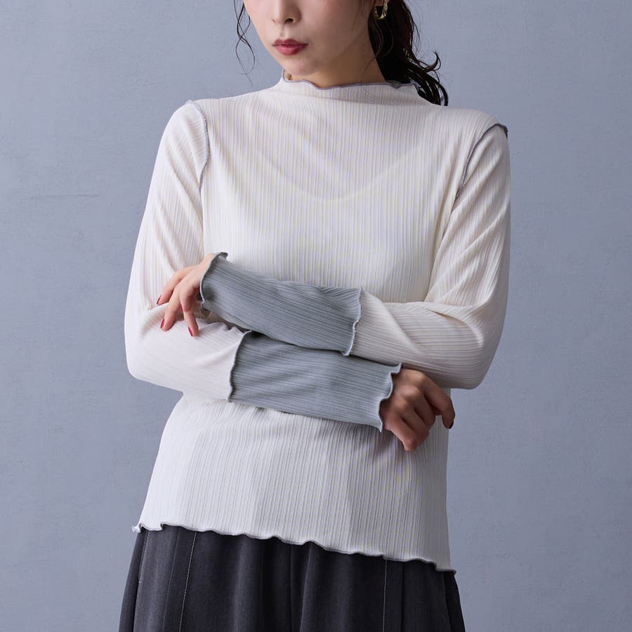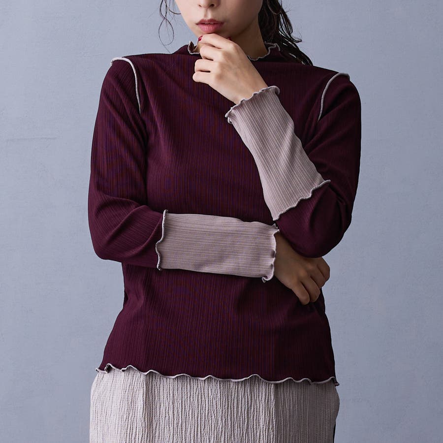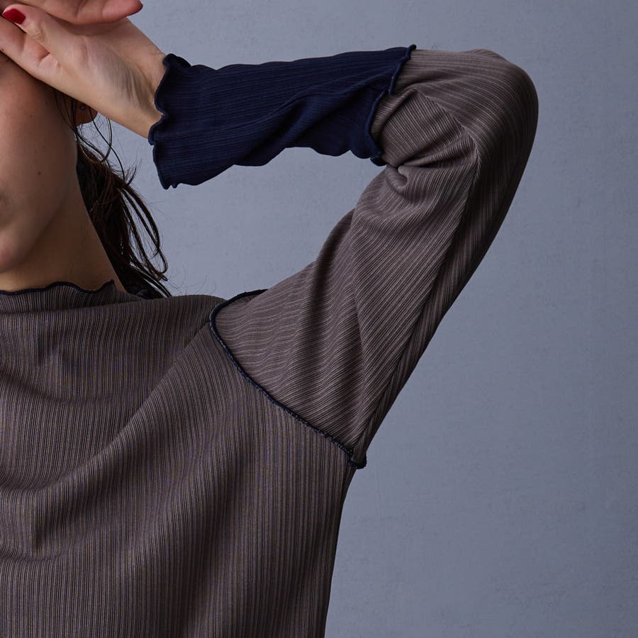 メローと袖の配色が目を引くリブ素材。