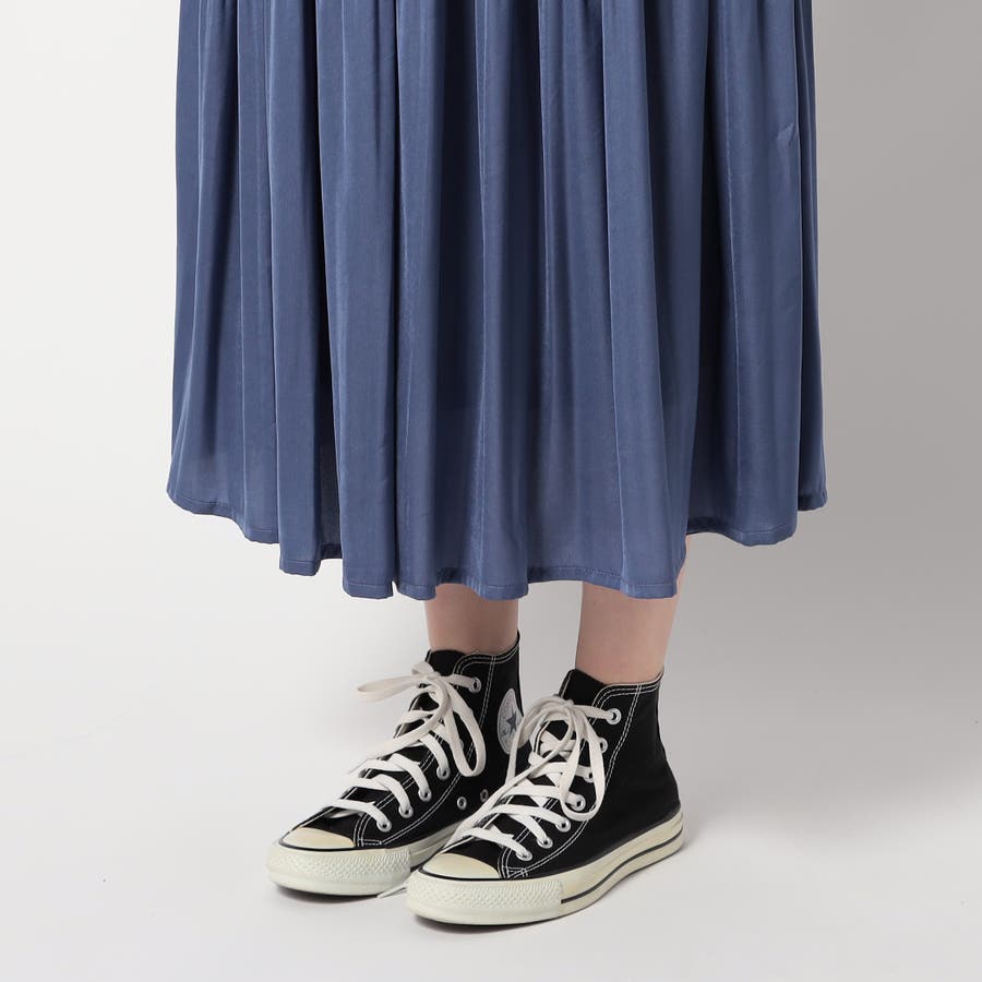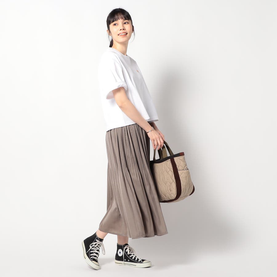 広がりが軽やかで落ち感のあるサテン素材なので、通勤ベーシックスタイルはもちろん、Tシャツやトレーナー・フ―ディーなどのカジュアルアイテムとの相性も抜群です。