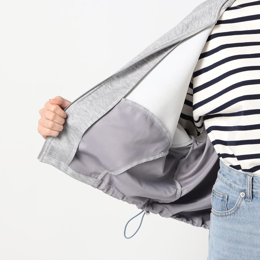 袖にはダーツ、裾にはドローコードが入っており、着用するだけで立体的に仕上がります。
