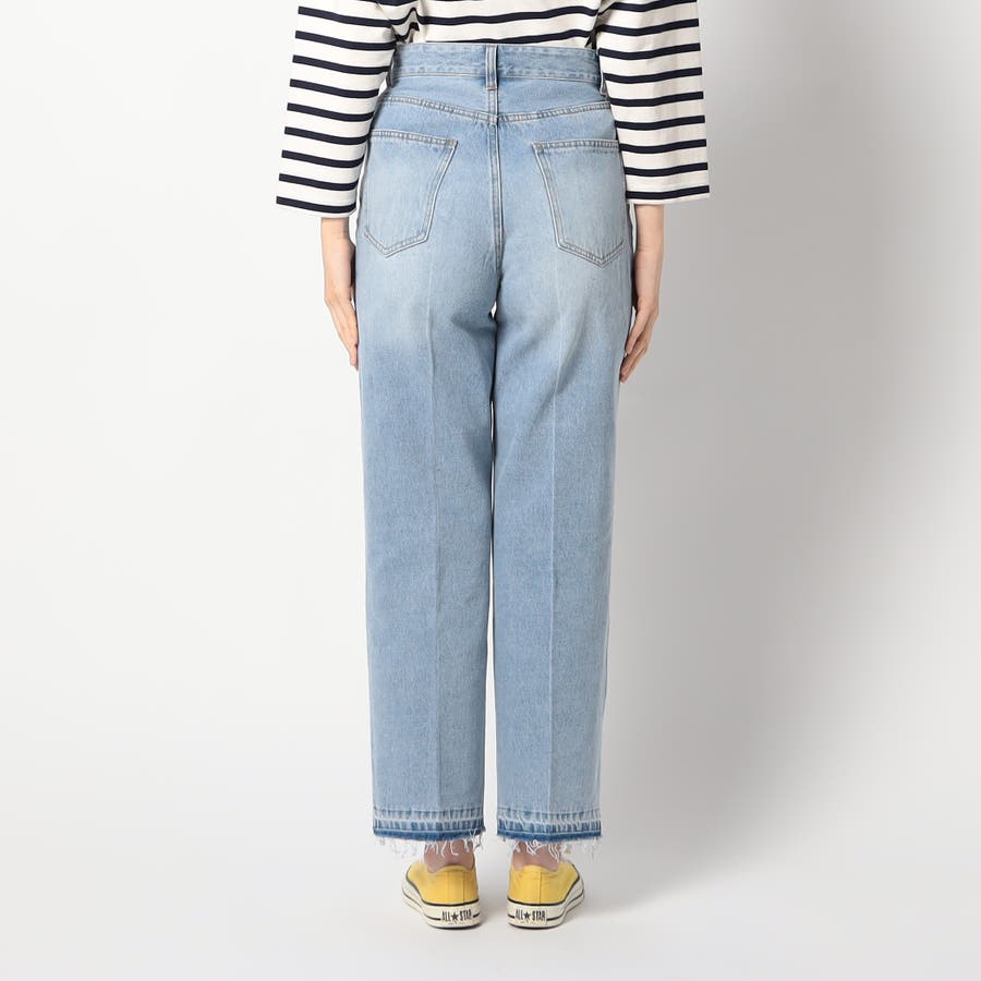 大人のデイリーカジュアルに使いやすい1本にする為、センターラインや裾フリンジの加工を入れ、こなれた雰囲気に仕上げました。