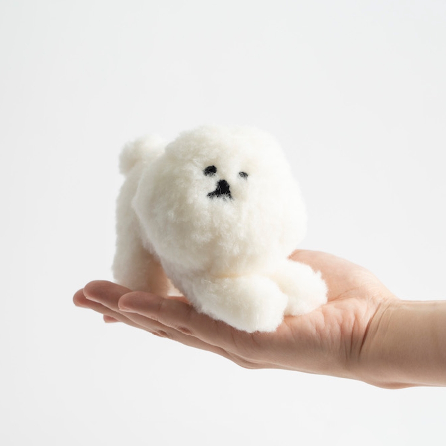 ちょこんと手のひらに納まる手乗りサイズ。ふわふわ、モコモコの真っ白な毛並で、とても気持ちのよい触り心地です。