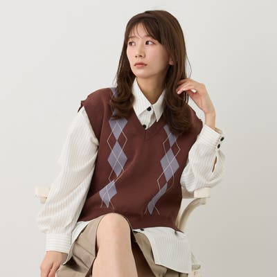 ブラウス+フレアスカートやワンピースなどのいつものコーデにアーガイルチェックがワンポイント加えてくれる一枚です。