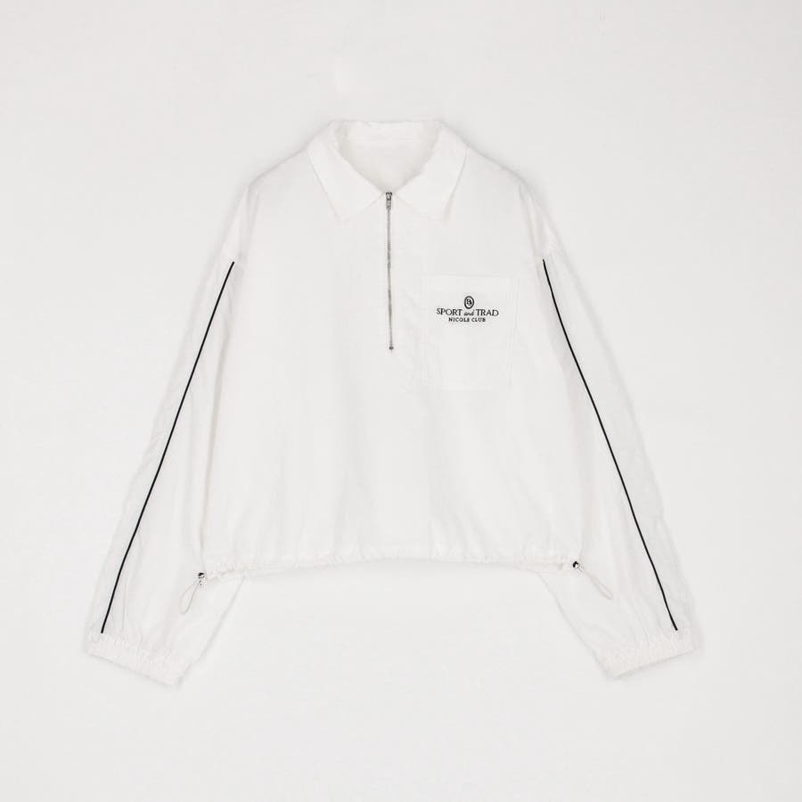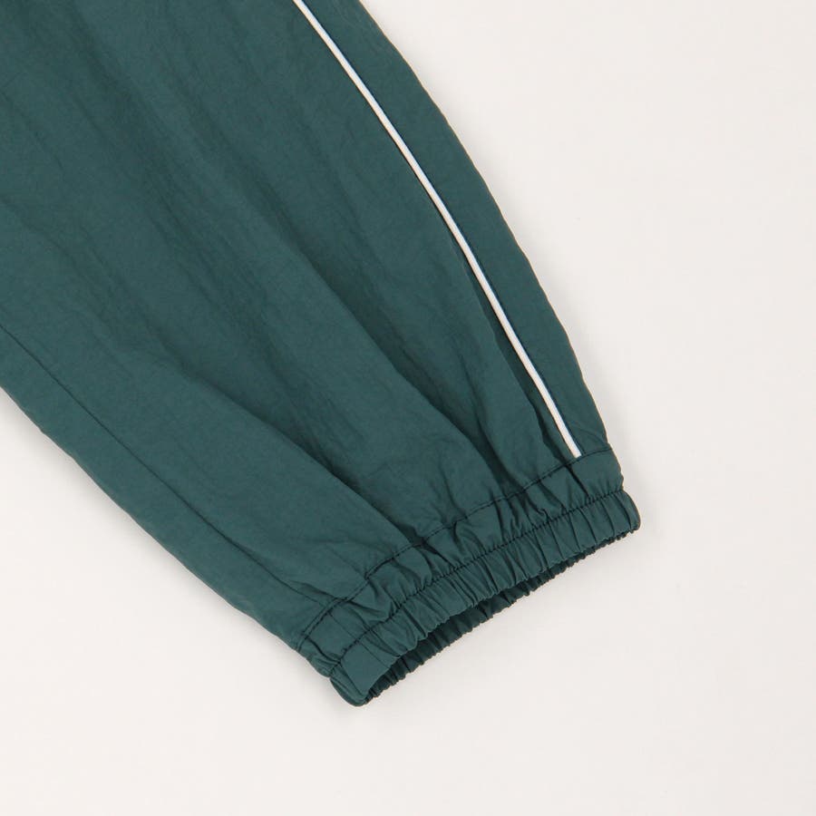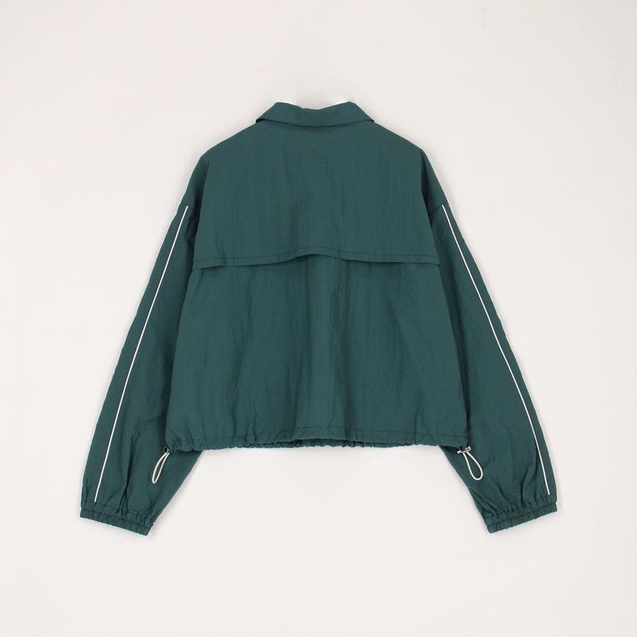 ナイロン生地のシャカシャカ感と袖のパイピングがスポーティーさを出しつつも、ポケットの刺繍はトラッドなフォントやアートで普段使いしやすい一着に◎