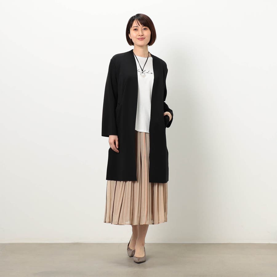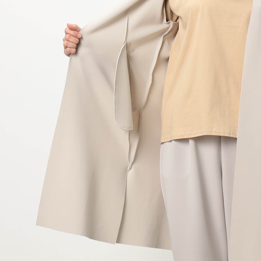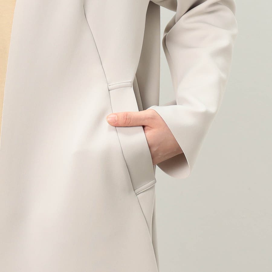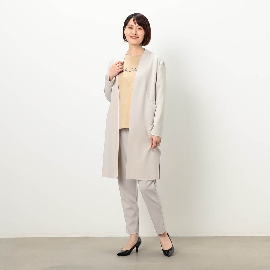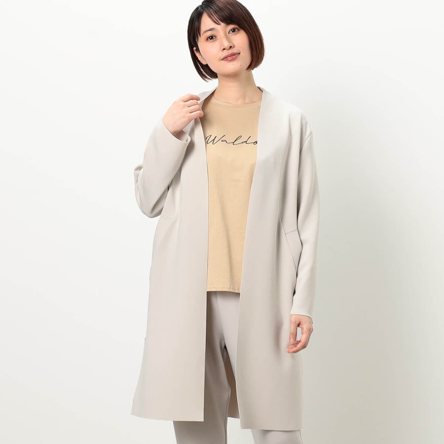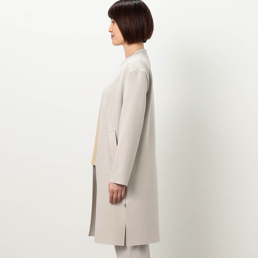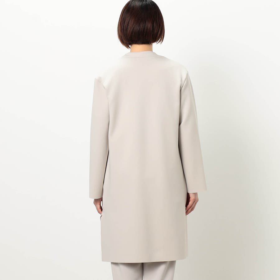 素材の軽やかさと膨らみストレッチ性が特徴のトッパーコートです。滑らかな肌ざわりでシワになりにくくノーカラーですっきりと見せています。[メーカー品番:5168-5110]ウエストリブトラックパンツ とセットアップになります。