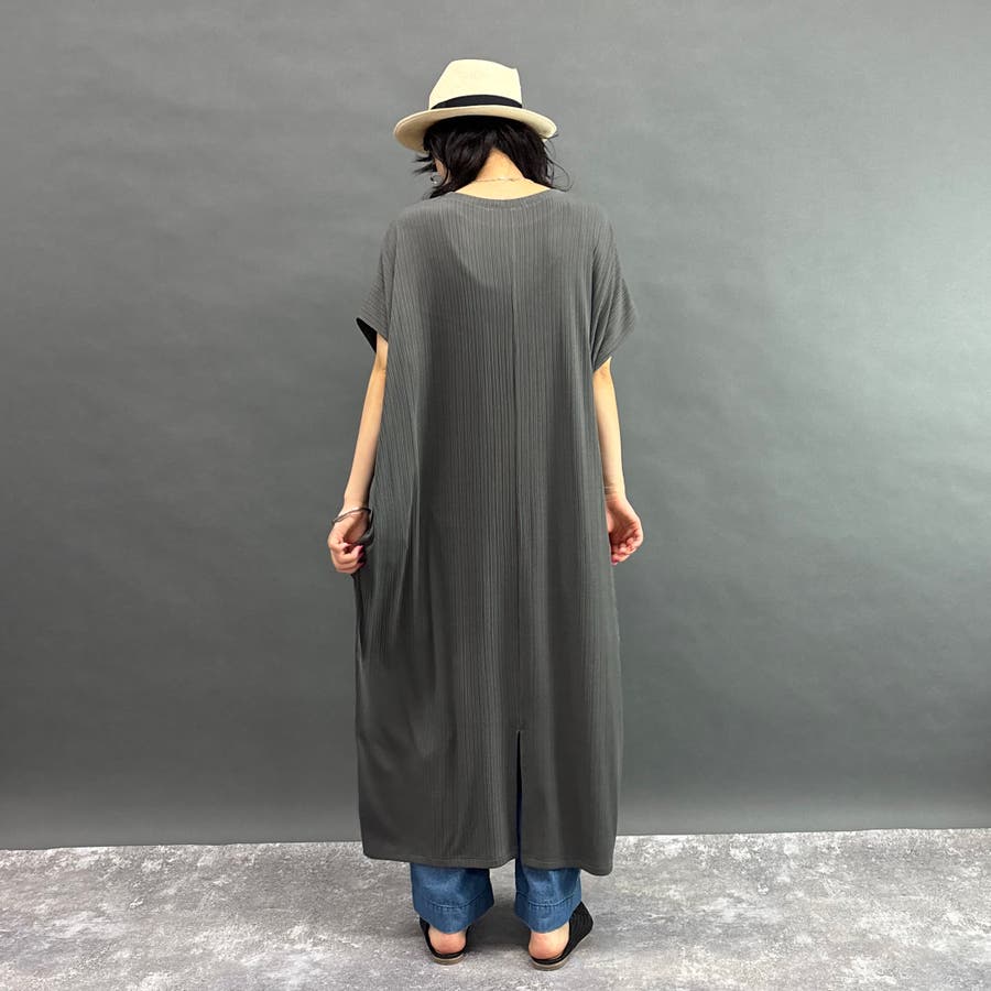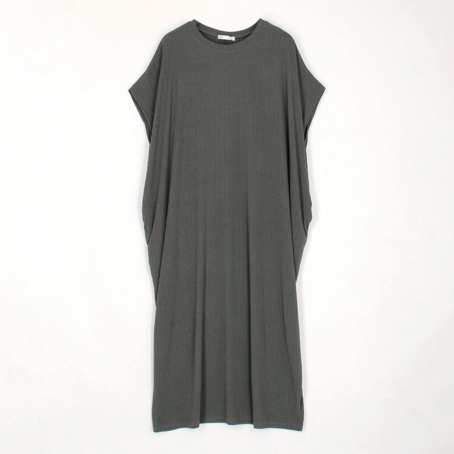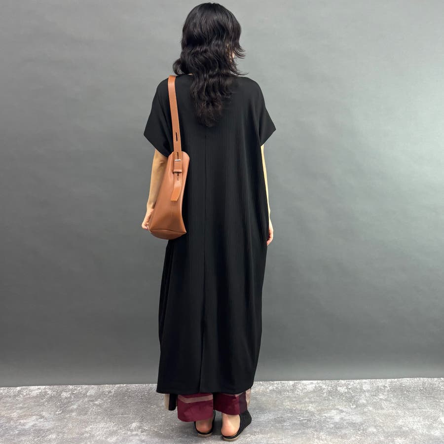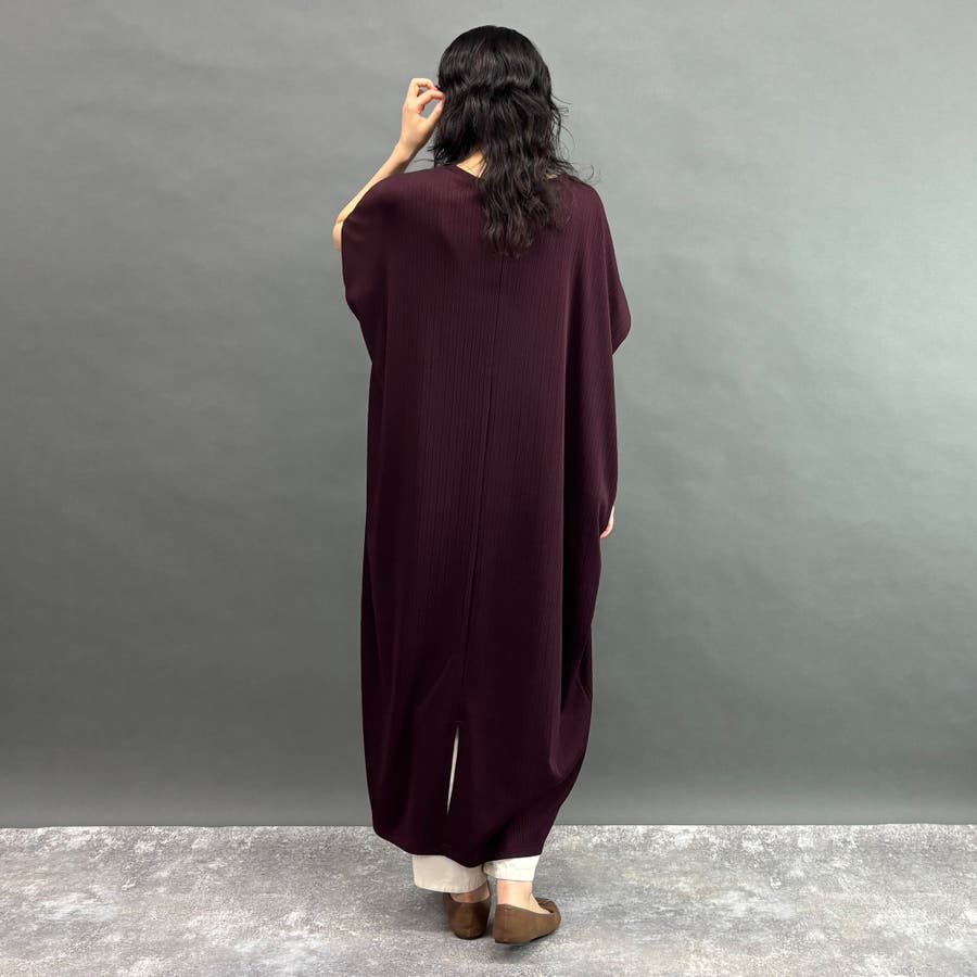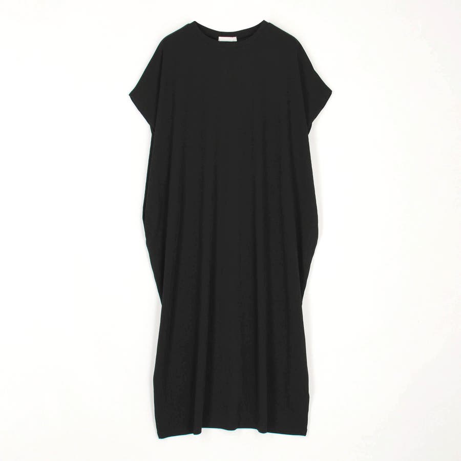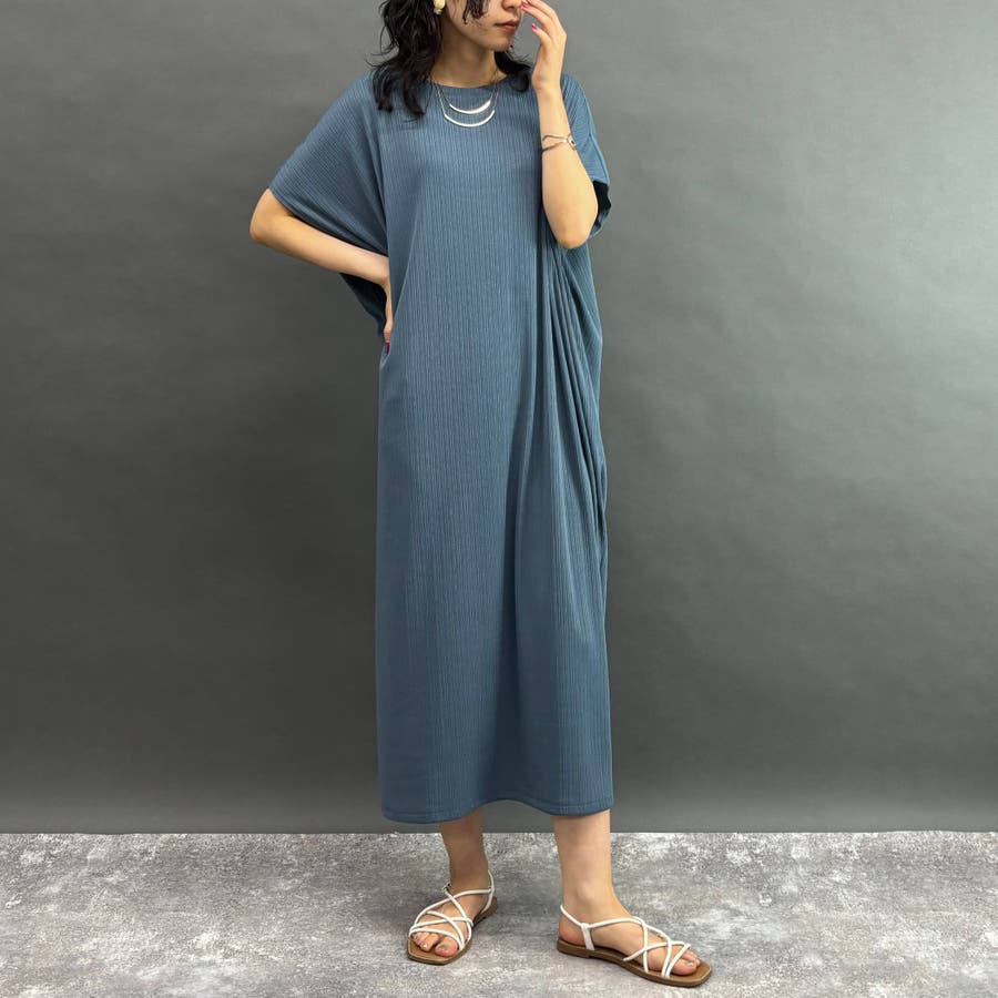ゆったりとしたデザインのロングワンピースは、体のシルエットをひろいにくく、シンプルなデザインながらも着映えする一枚です。