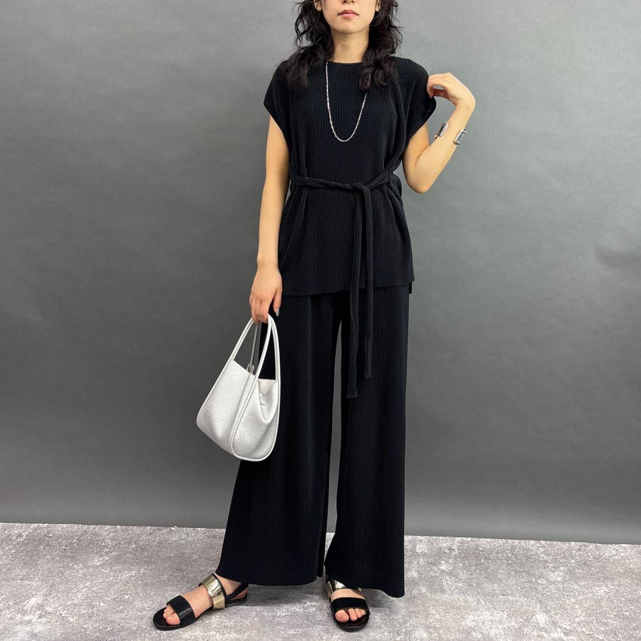 リラックス感漂うカットプリーツ素材のセットアップ。