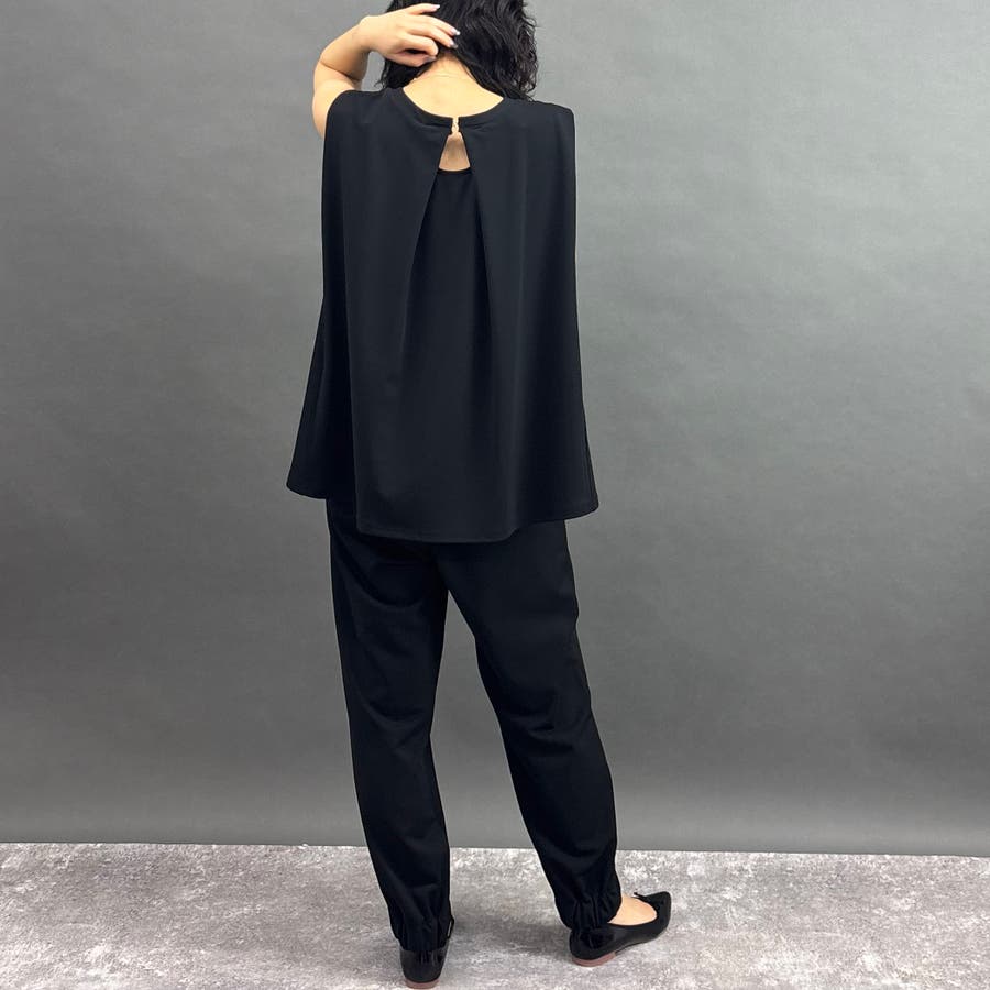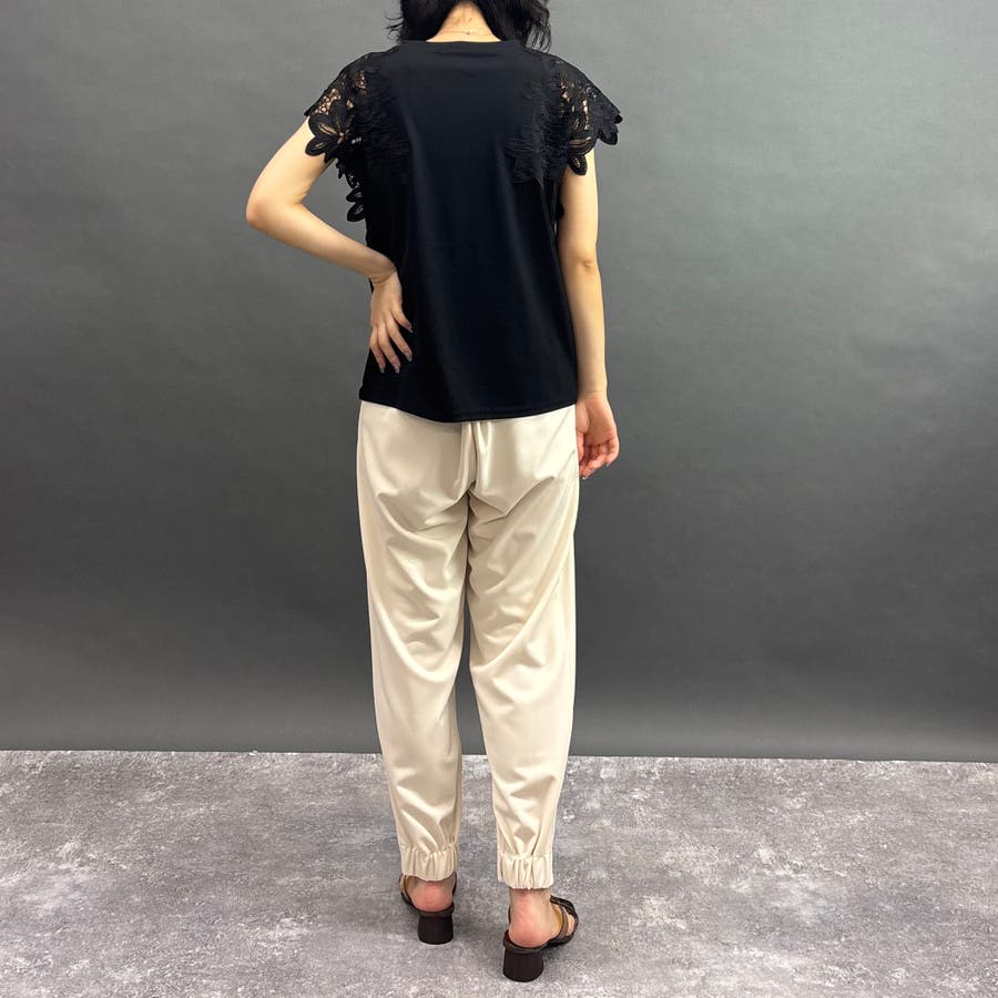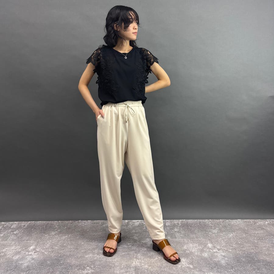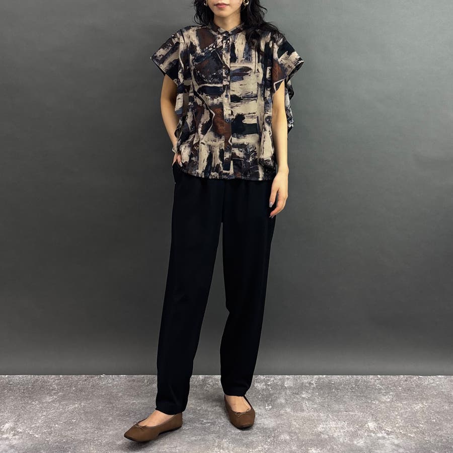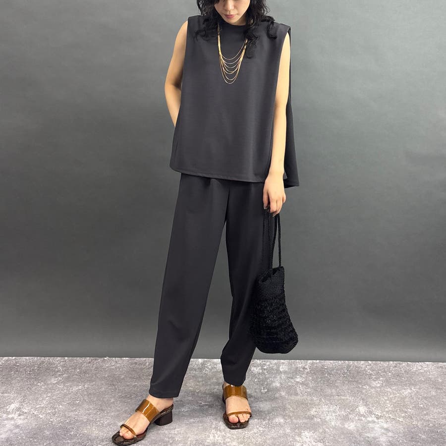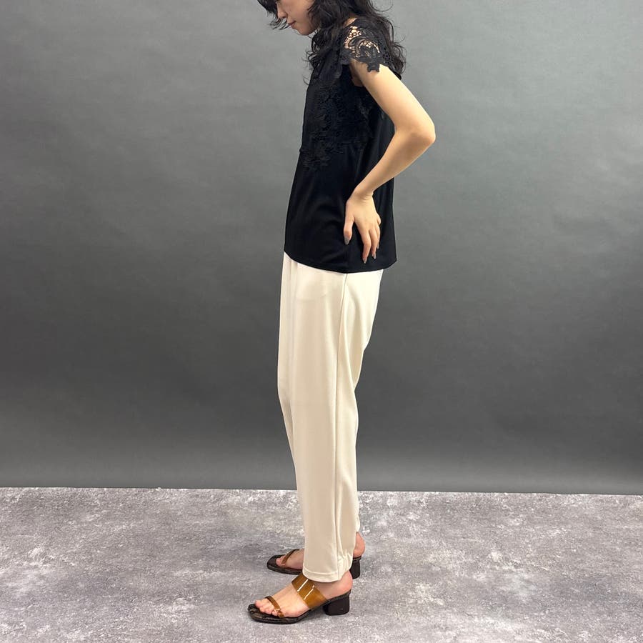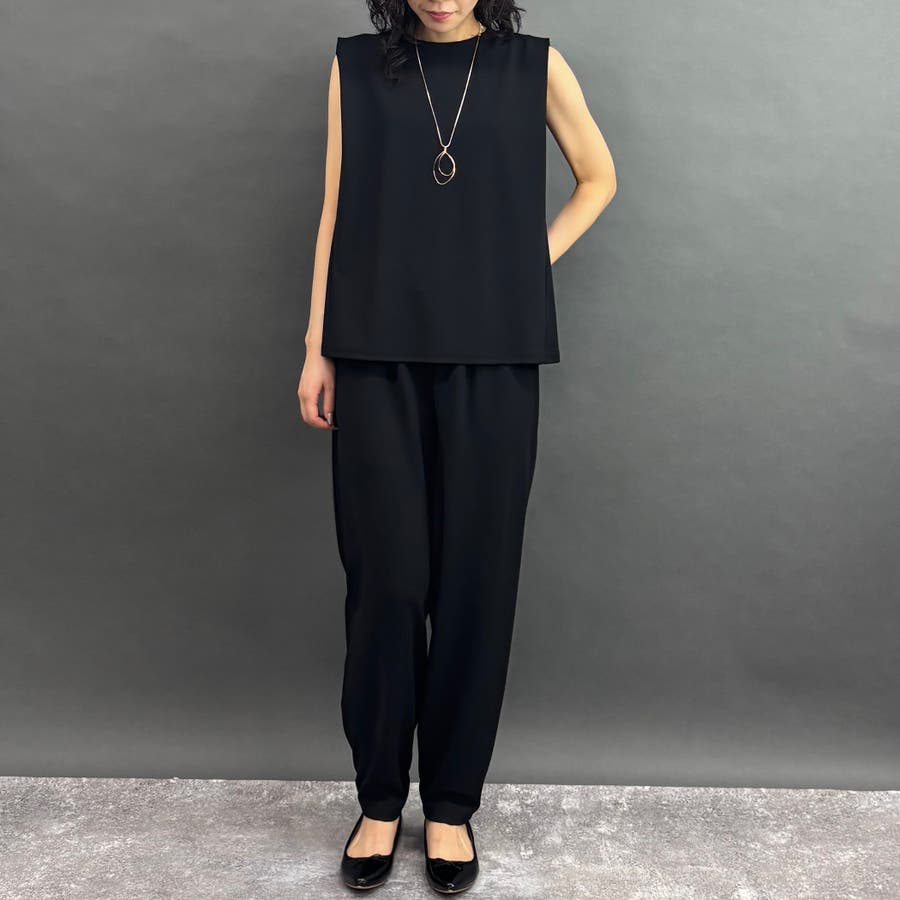 同素材のカットブラウス(メーカー品番:5205-8301)と合わせると統一感のあるセットアップコーデを楽しめます。