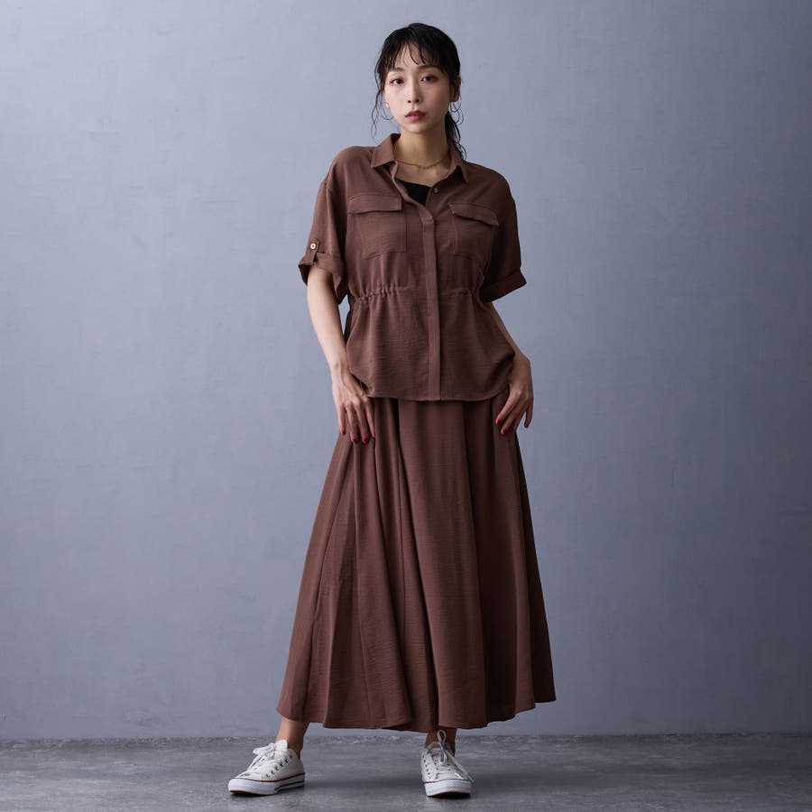 同素材のスカート(メーカー品番:5205-0222)と合わせると統一感のあるセットアップコーデを楽しめます。