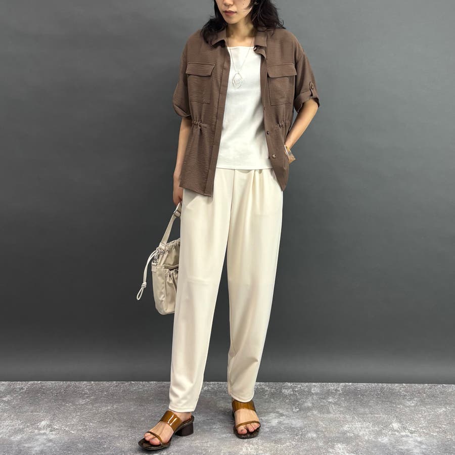 ウエスト部分は裏側にドロストできる紐がついており、コーディネートや気分によってデザインアレンジができます。