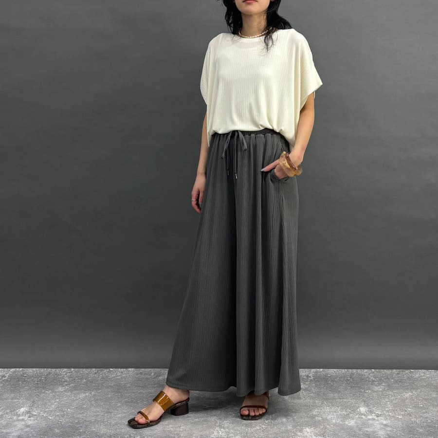 同素材のワイドパンツ(メーカー品番:5105-5102)やカーディガン(メーカー品番:5105-9203)と合わせると統一感のあるセットアップコーデを楽しめます。