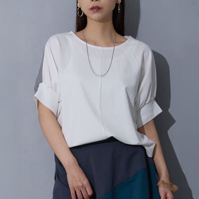 袖ギャザーや裾のラウンドが女性らしいシルエットを演出してくれます。