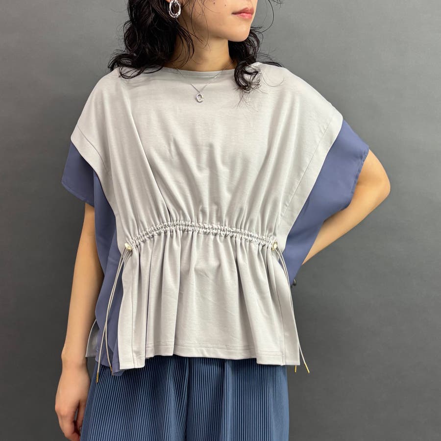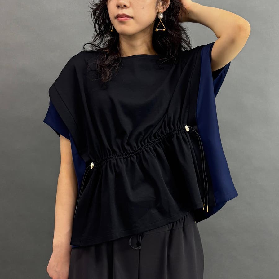 サイドの配色サテン生地がポイントのデザインプルオーバー。
