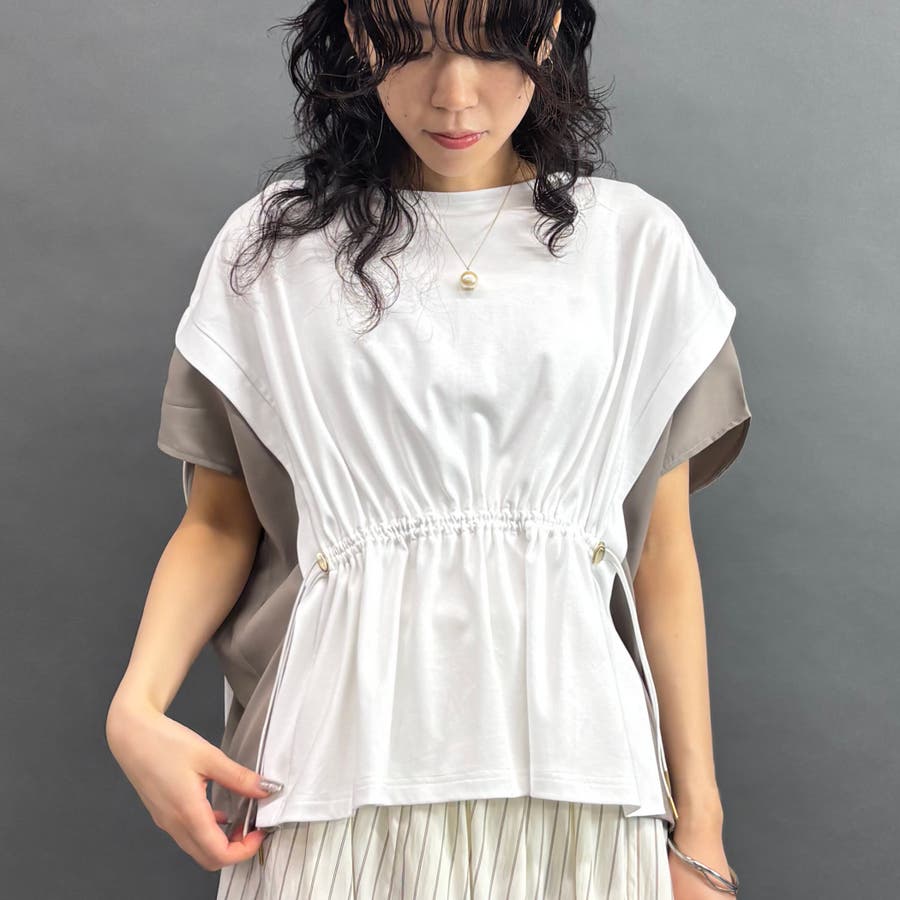 肌触りの良いスムースカットソー×サテンの異素材使い