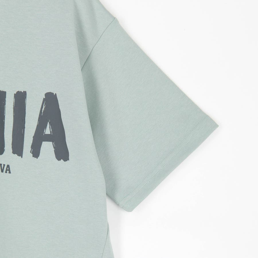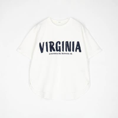 大胆な手書き風のカントリーロゴが入った、ラウンドヘムTシャツです。
