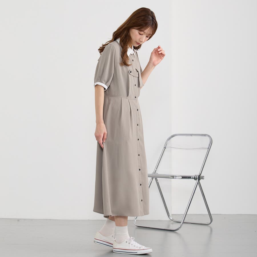 5分袖に仕上げたこちらのワンピースは、落ち感のあるデシン素材が春らしく女の子らしい1着。