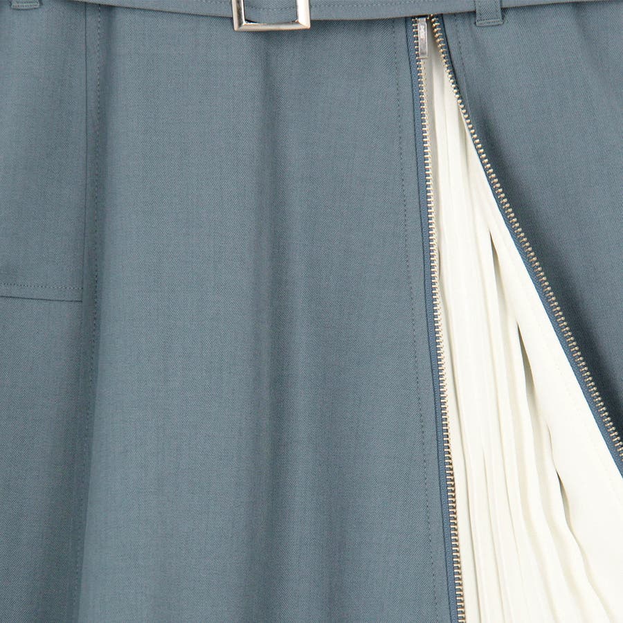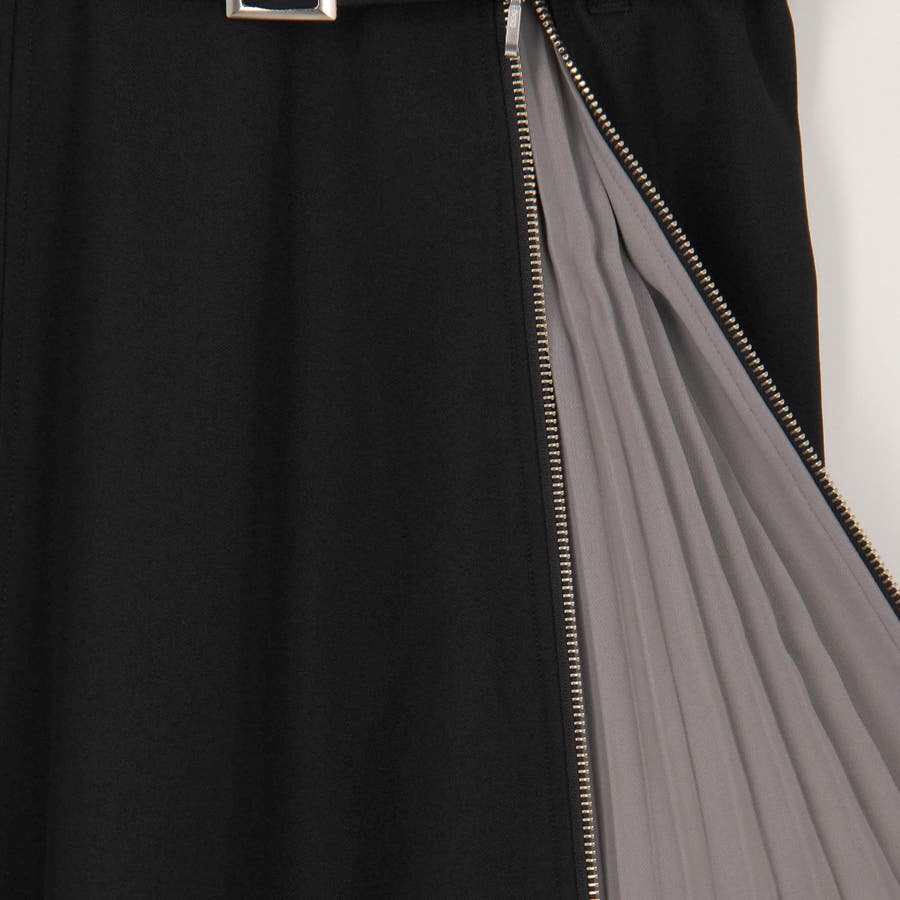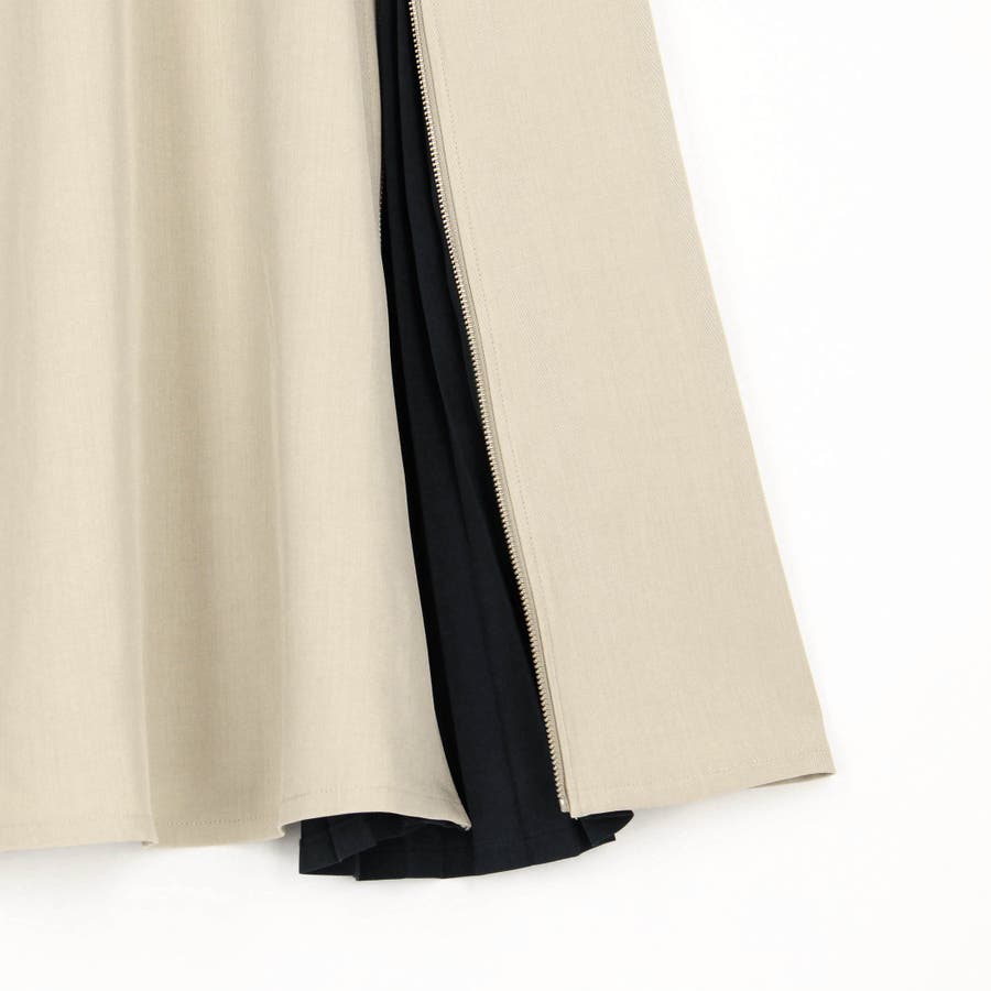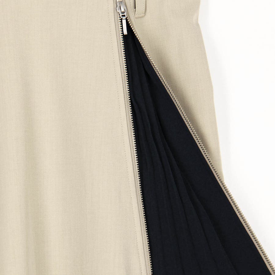 ファスナーで開閉可能なスリットからのぞく配色のプリーツがコーディネートのアクセントに。
