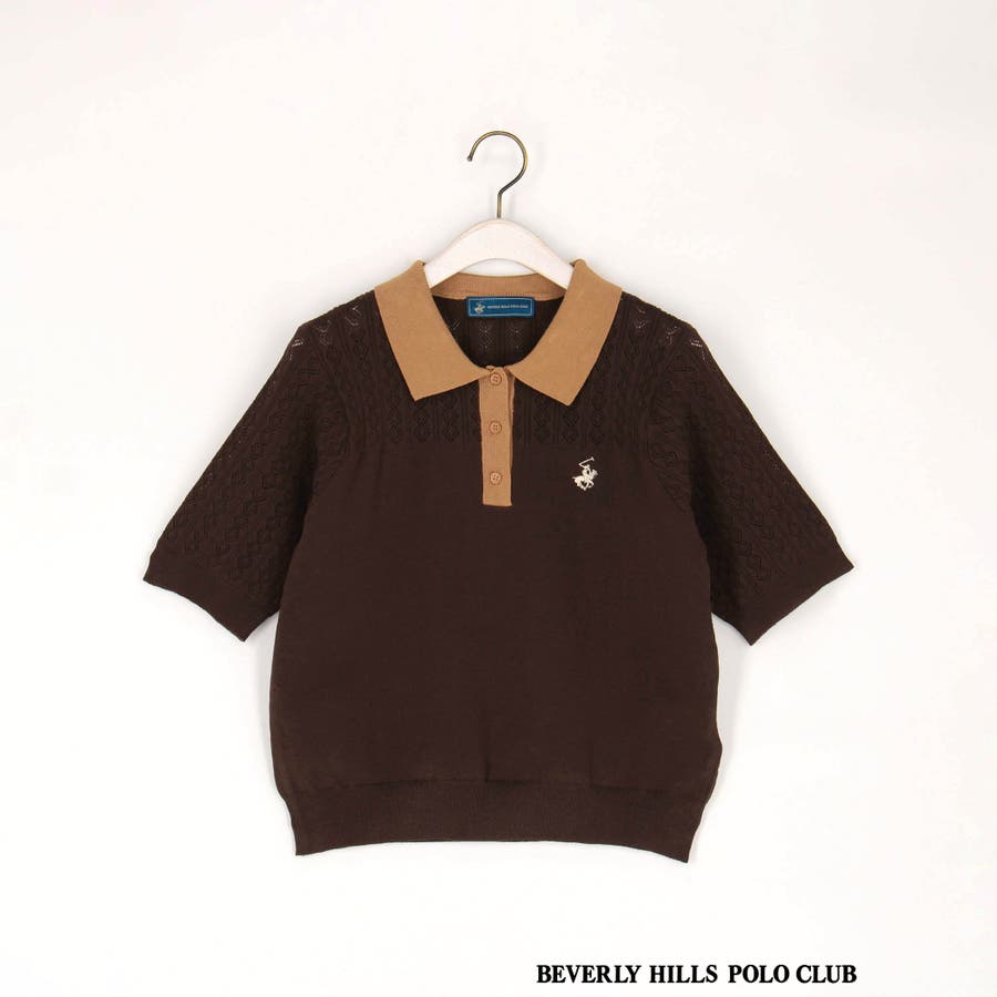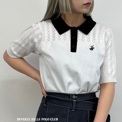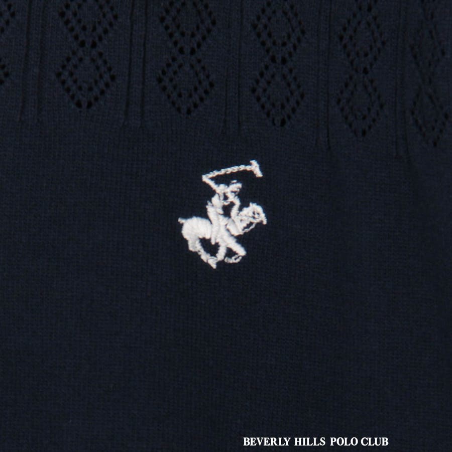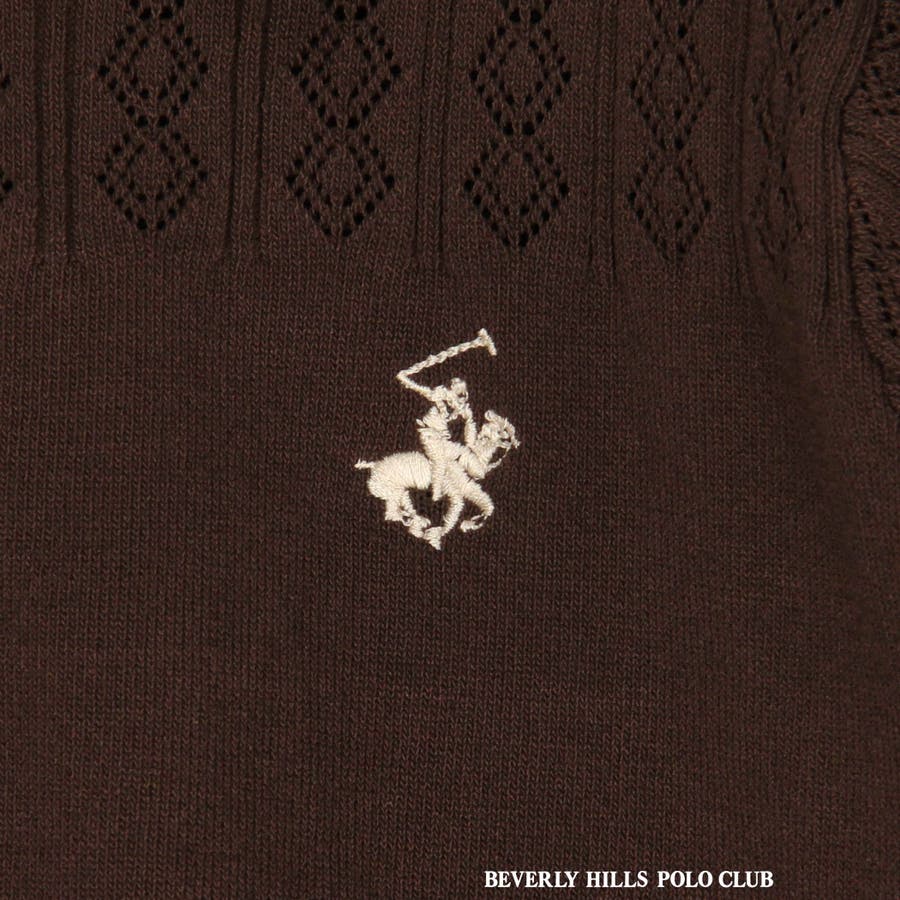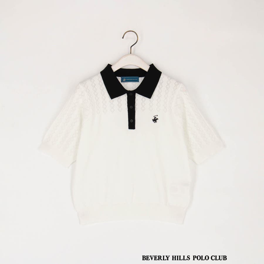 【BEVERLY HILLS POLO CLUB】透かし編みニットポロシャツ