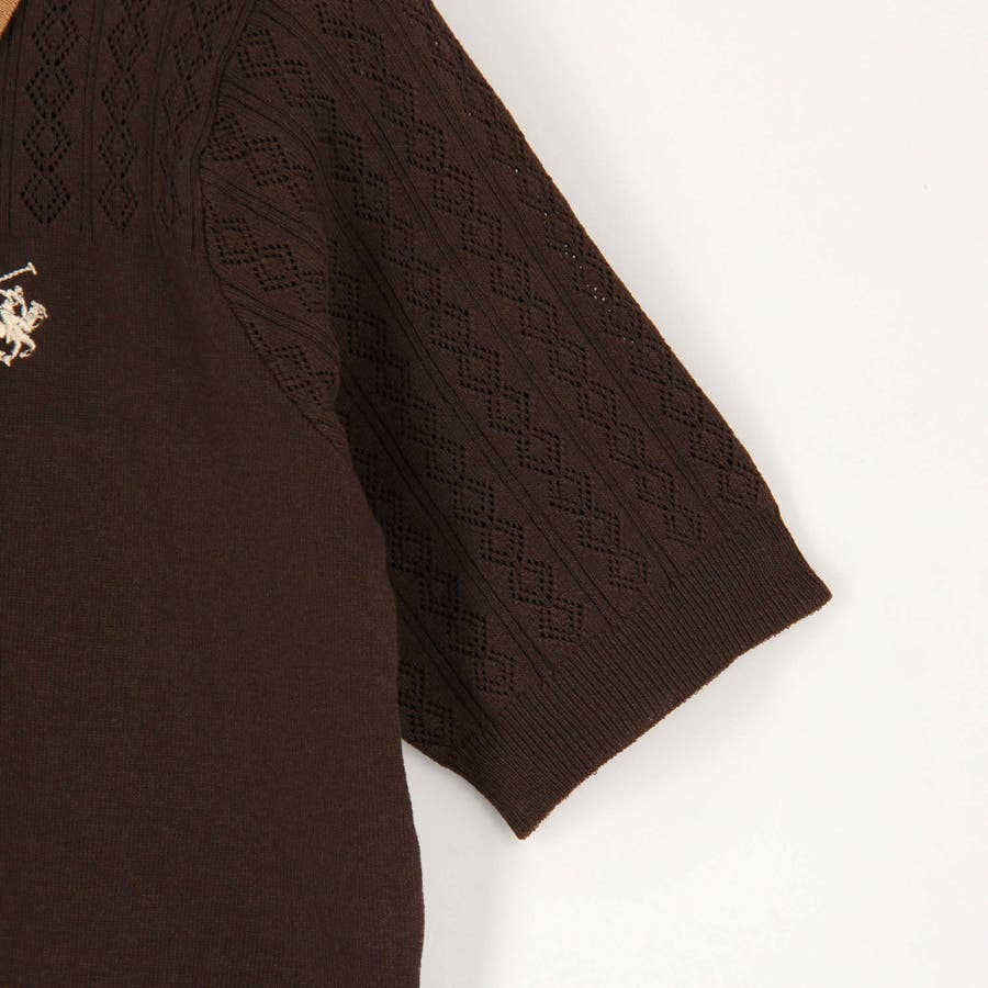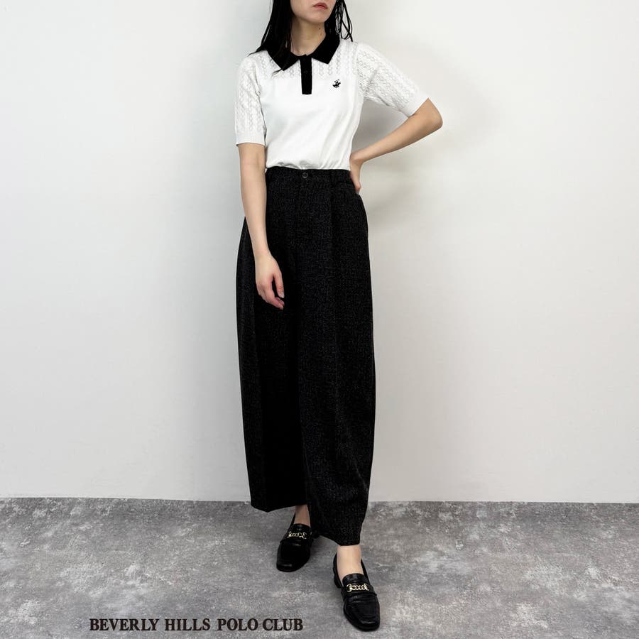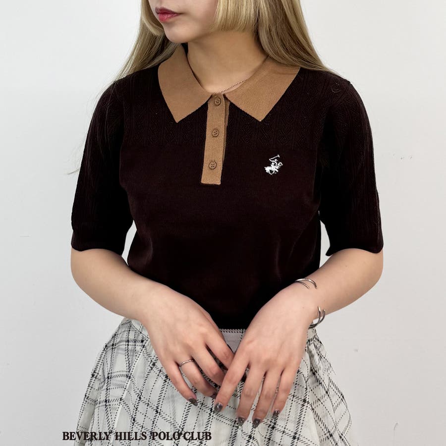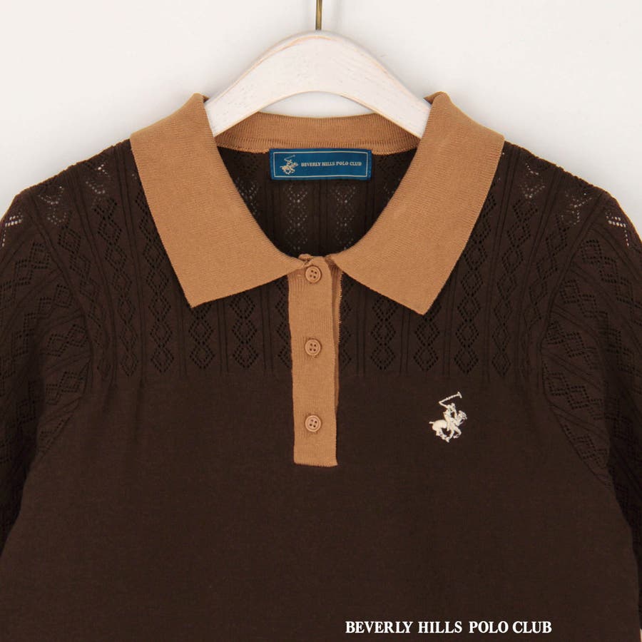 【BEVERLY HILLS POLO CLUB】透かし編みニットポロシャツ