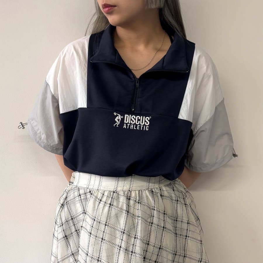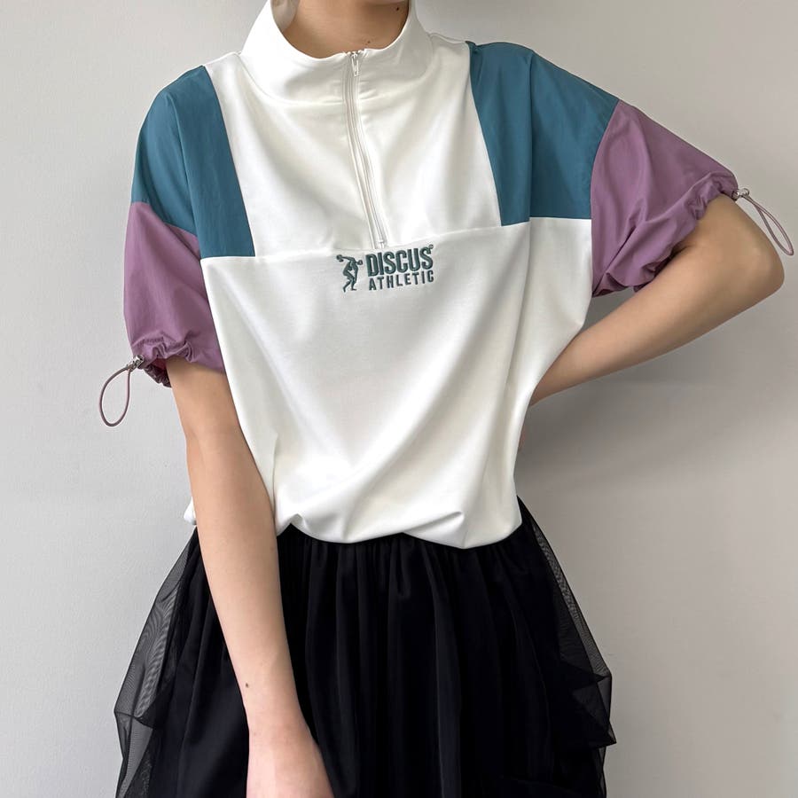 異素材使い+配色のハーフジッププルは夏のスポーティースタイルに欠かせないアイテム。