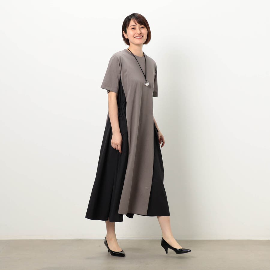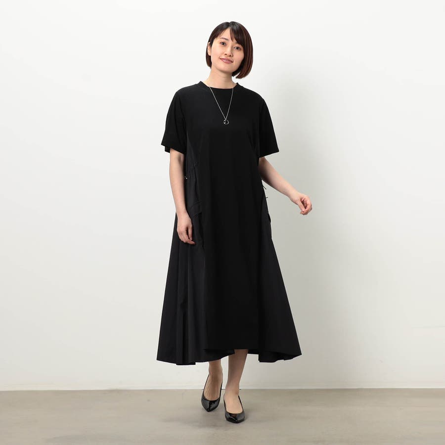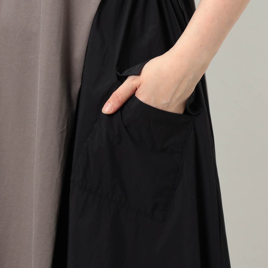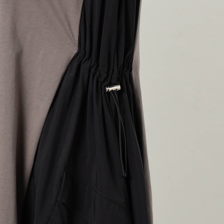 ★デザインは綿とナイロンをドッキングさせたワンピース。脇ポケット・ウエストはドロスト仕様。