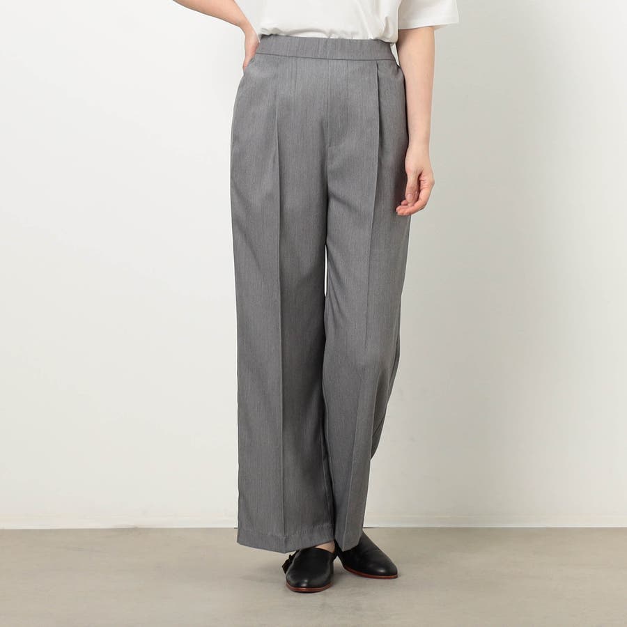 ★デザインはほどよいワイド感のセンタープレスを施したウエストゴム仕様のストレートパンツ。
