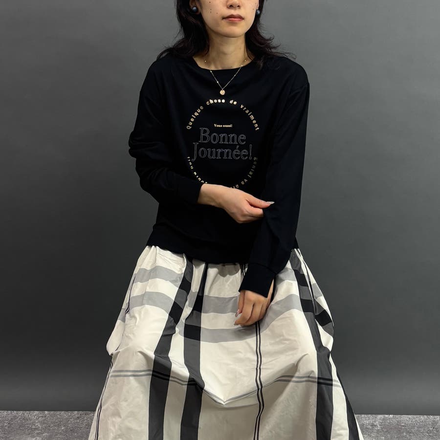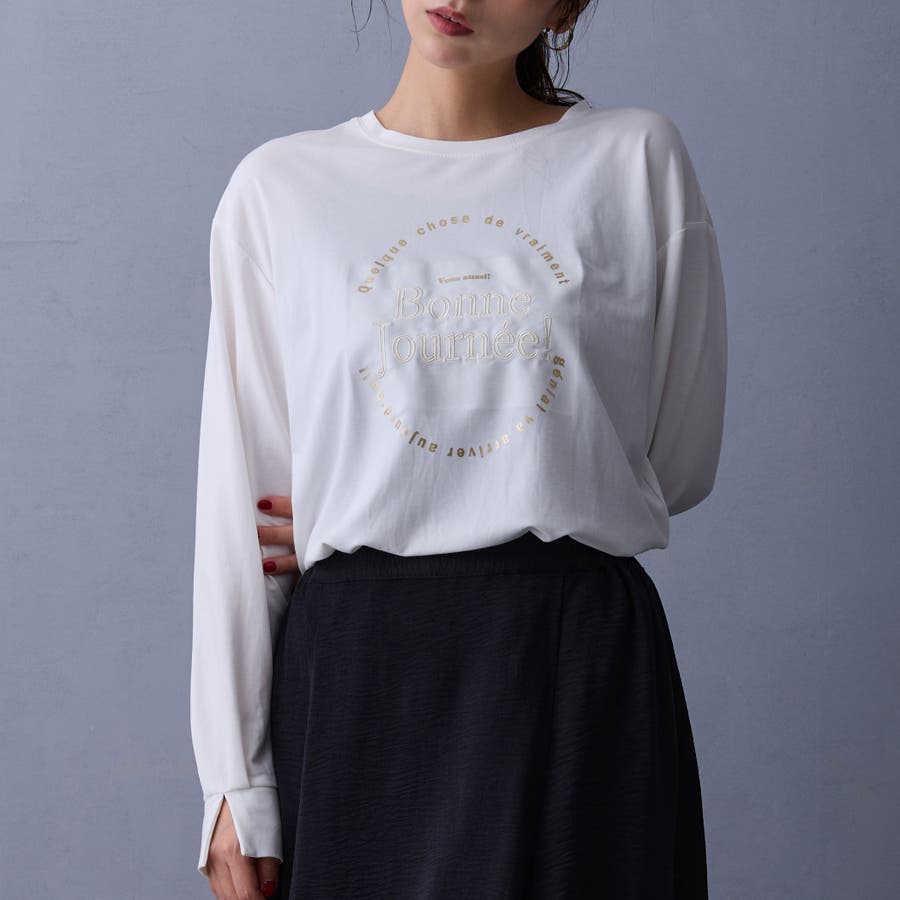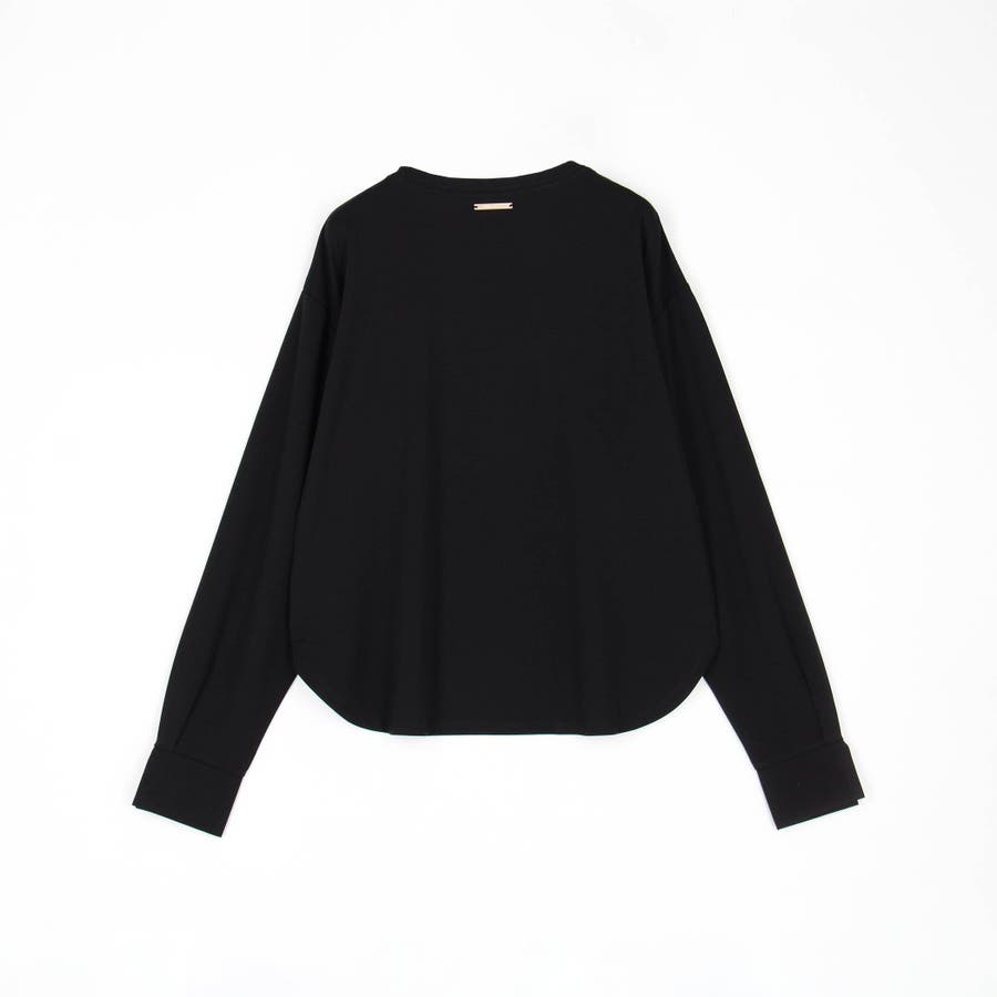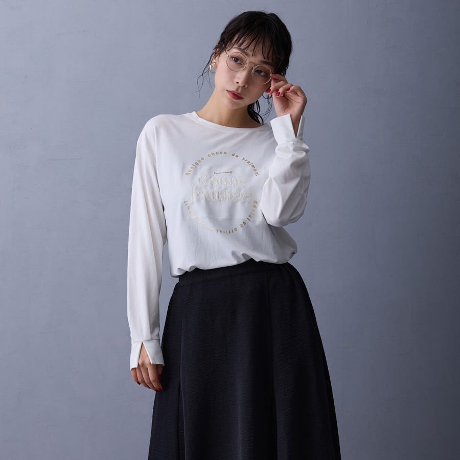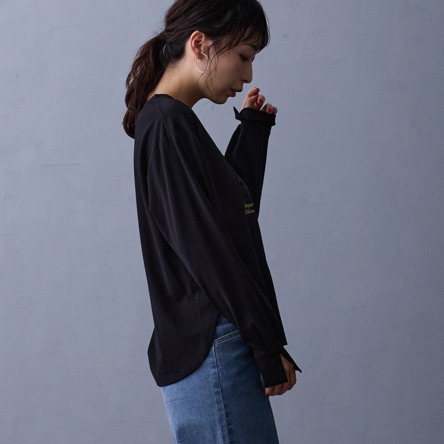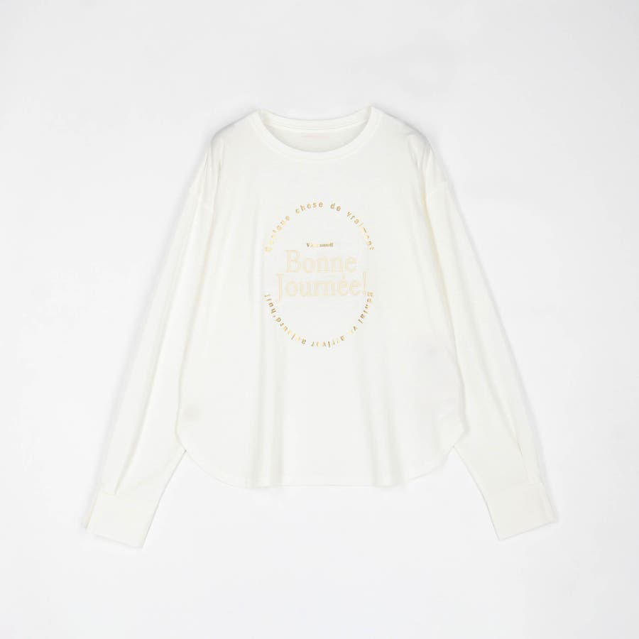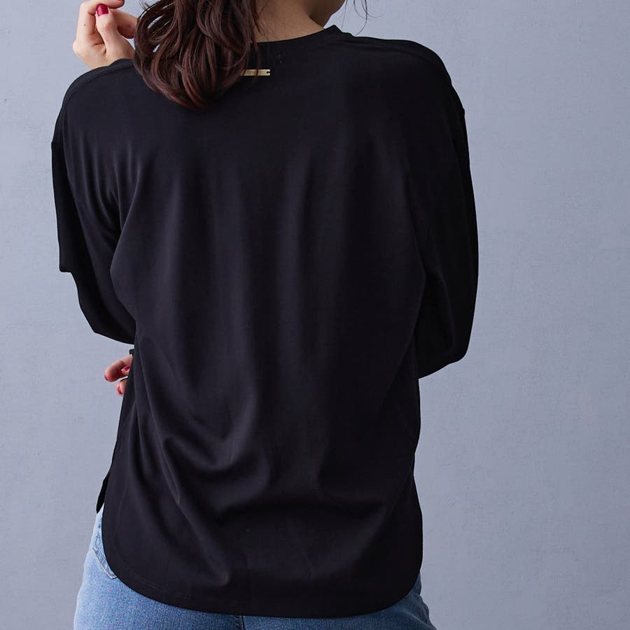 上品なデザインTシャツは、裾ラウンドでレイヤードも楽しめます。