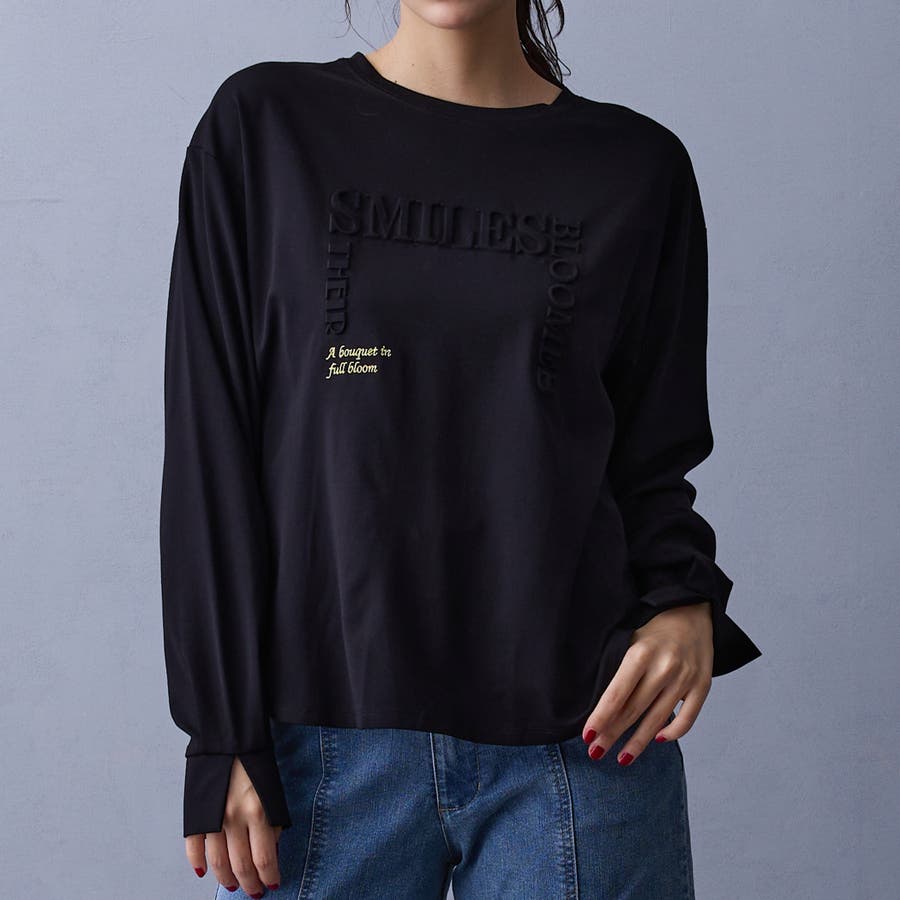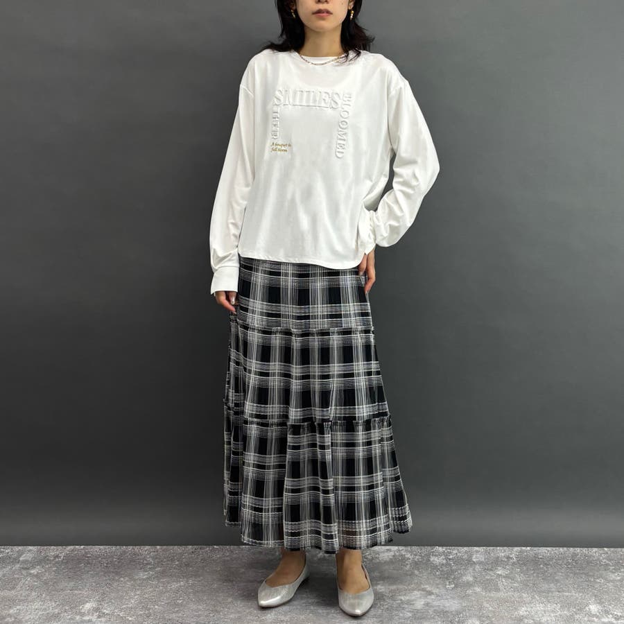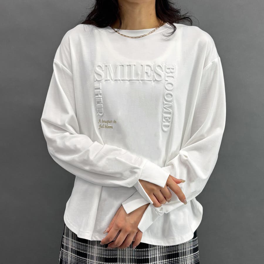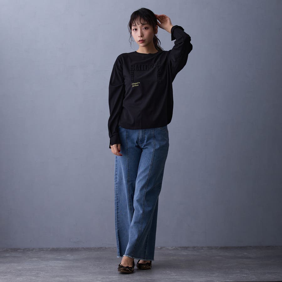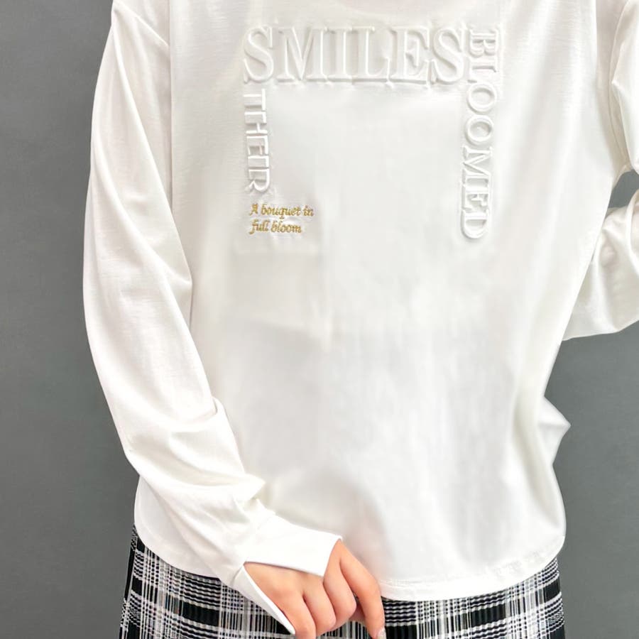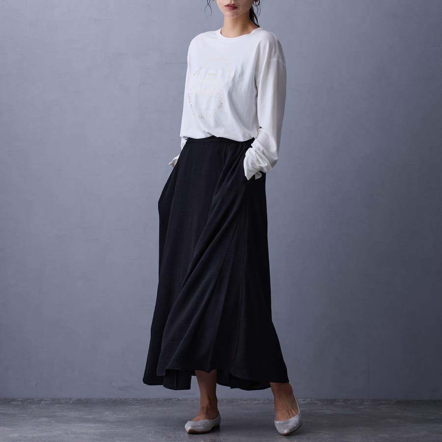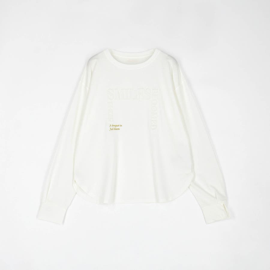 上品なデザインTシャツは、裾ラウンドでレイヤードも楽しめます。