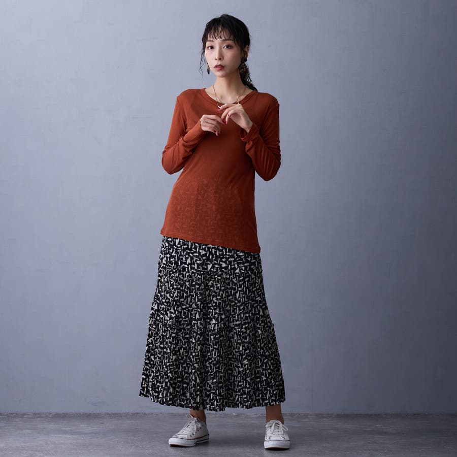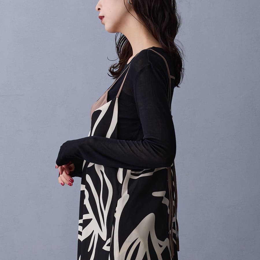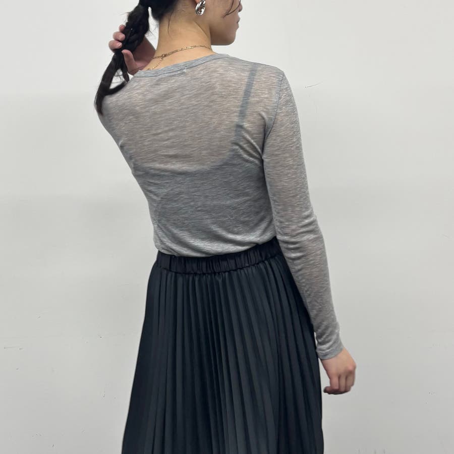 薄手で重ね着がしやすく、ジャケットやカーディガンのインナーとして、ジャンスカやワンピース、ロングTシャツなどのレイヤードアイテムとしても◎