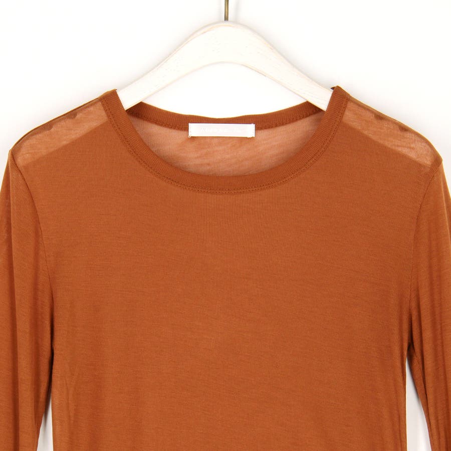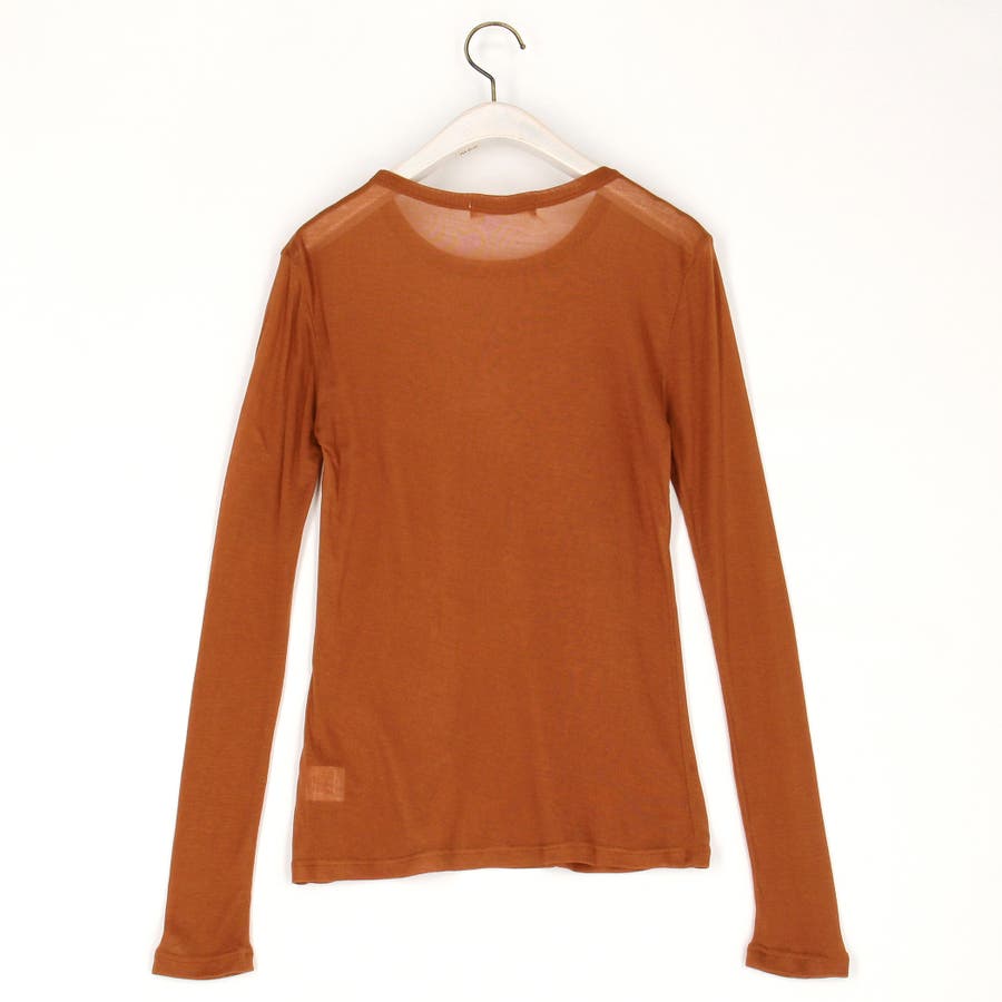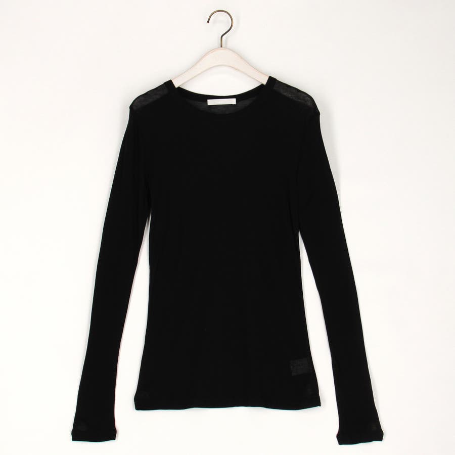 長めの袖丈、ほどよいタイトシルエットでレイヤードにもおすすめ。