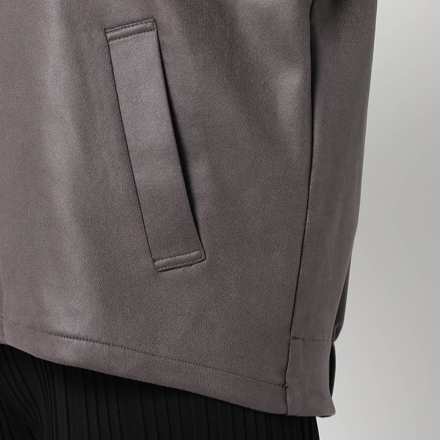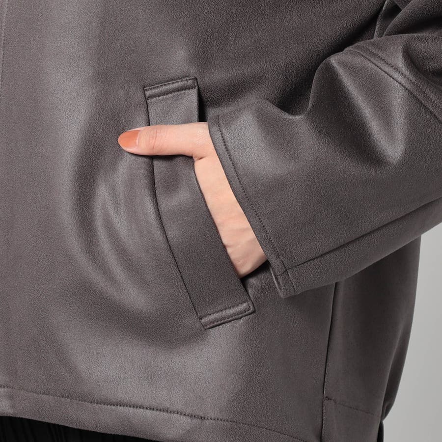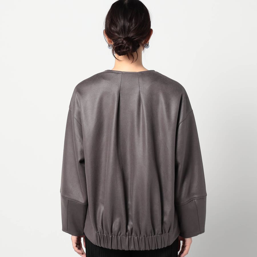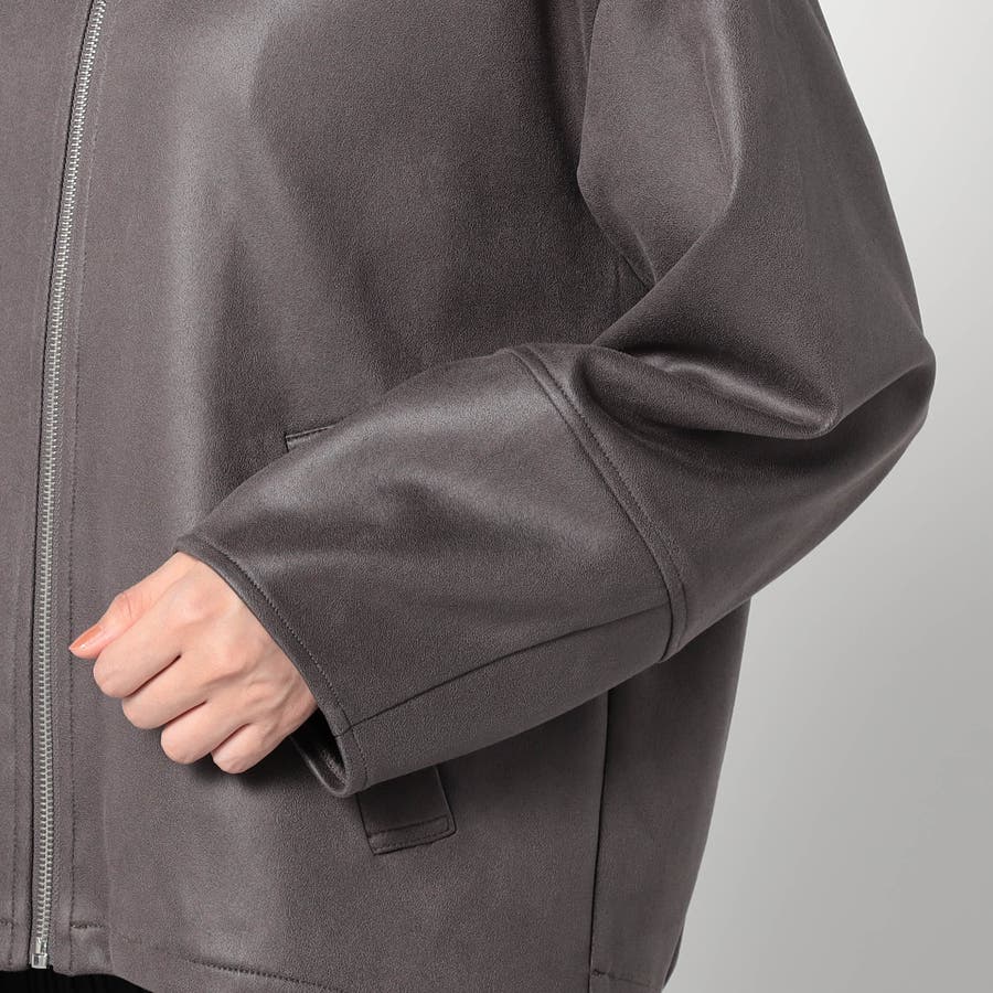 柔らかい手触りのスエード調のダンボールニット素材を使用したノーカラージャケットです。