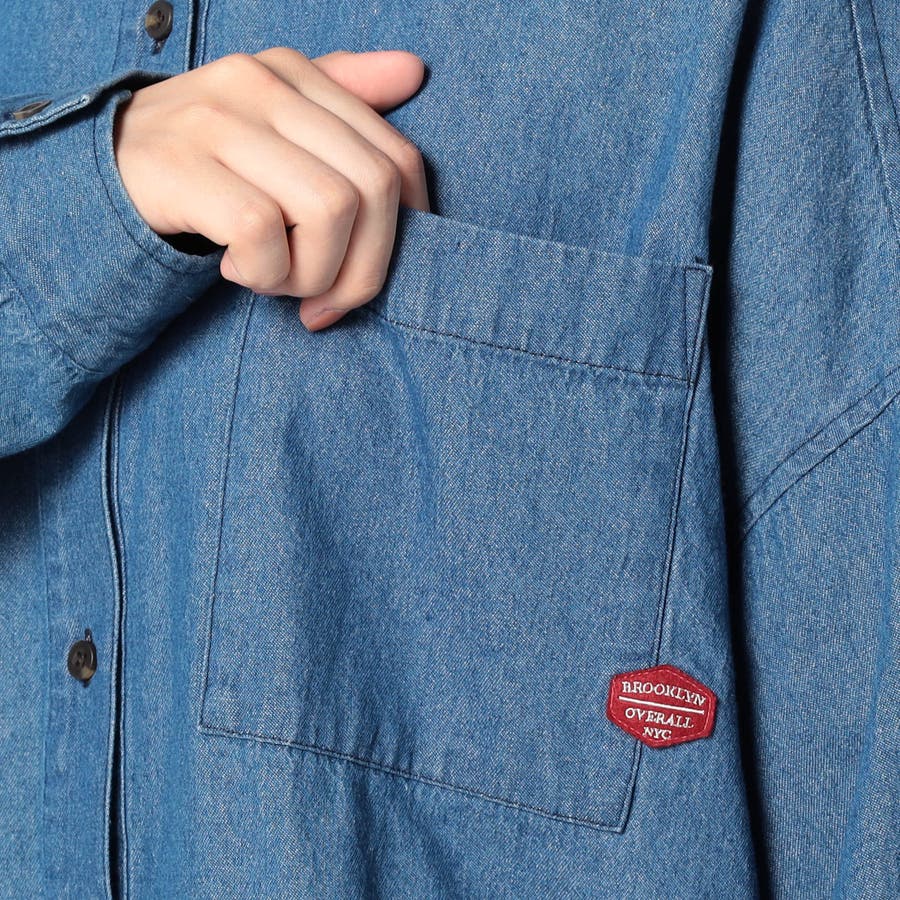 胸に付いた BROOKLYN OVERALLの赤いワッペンがポイントです。
