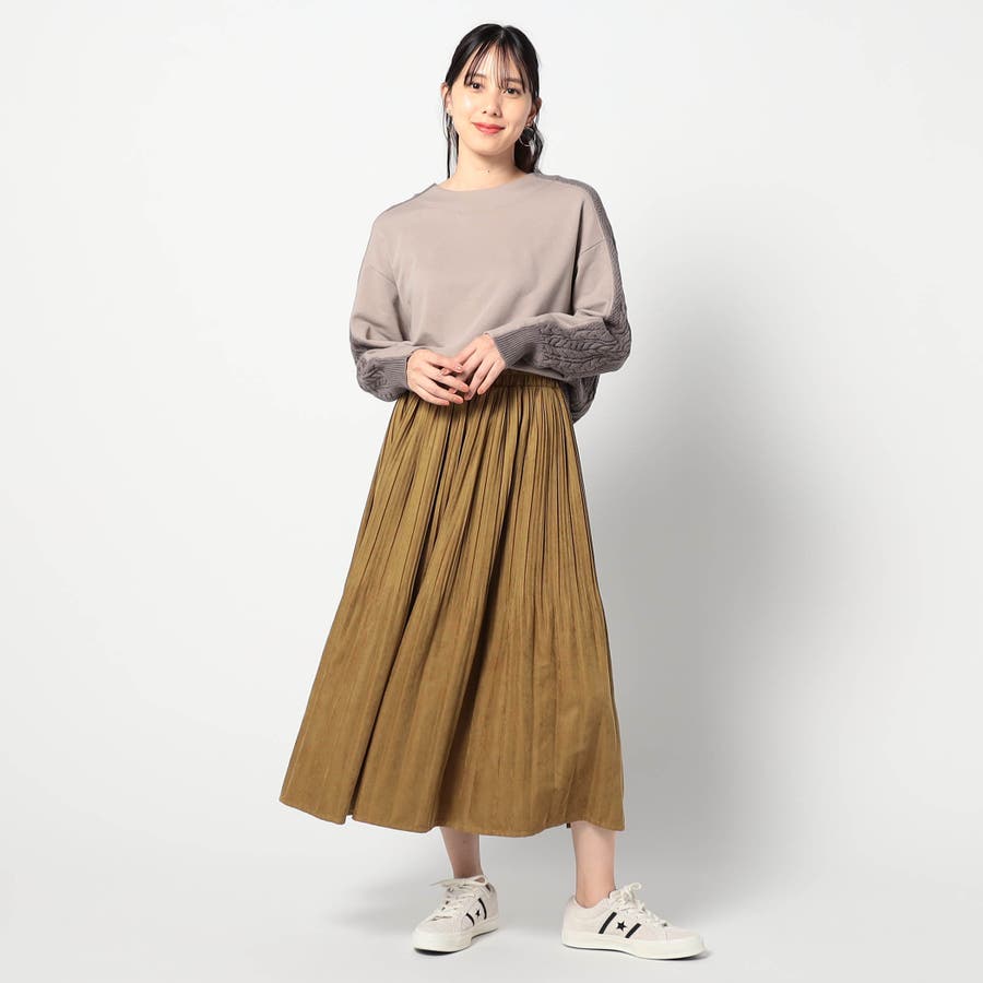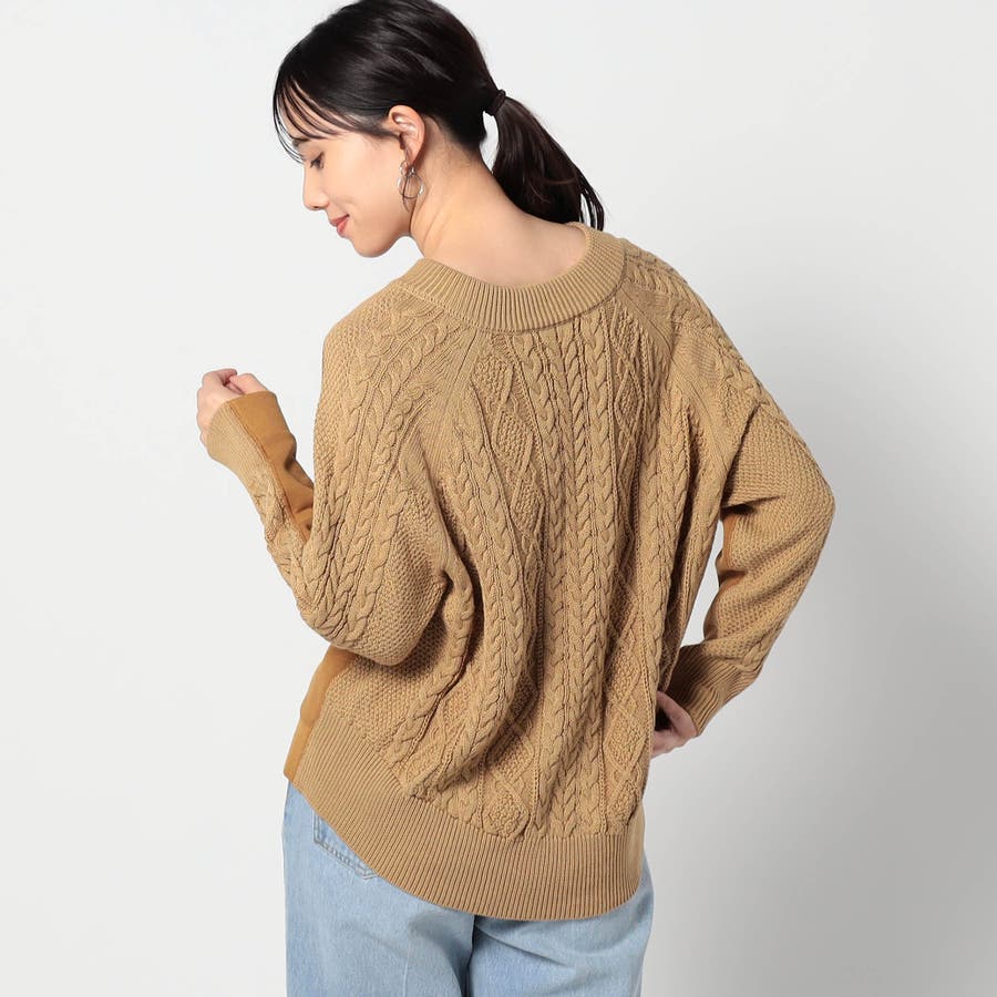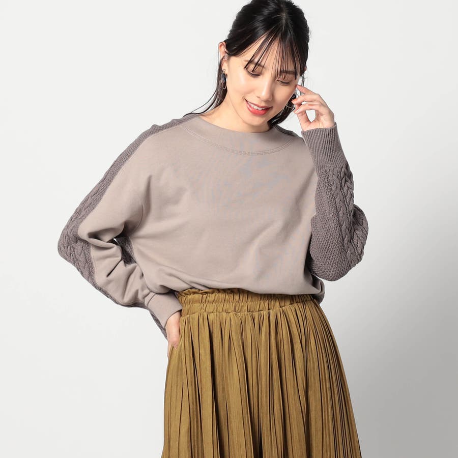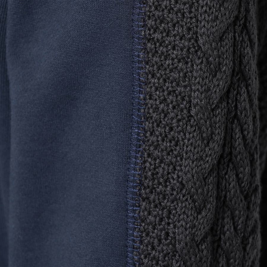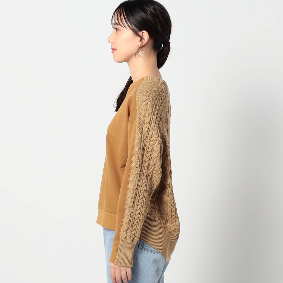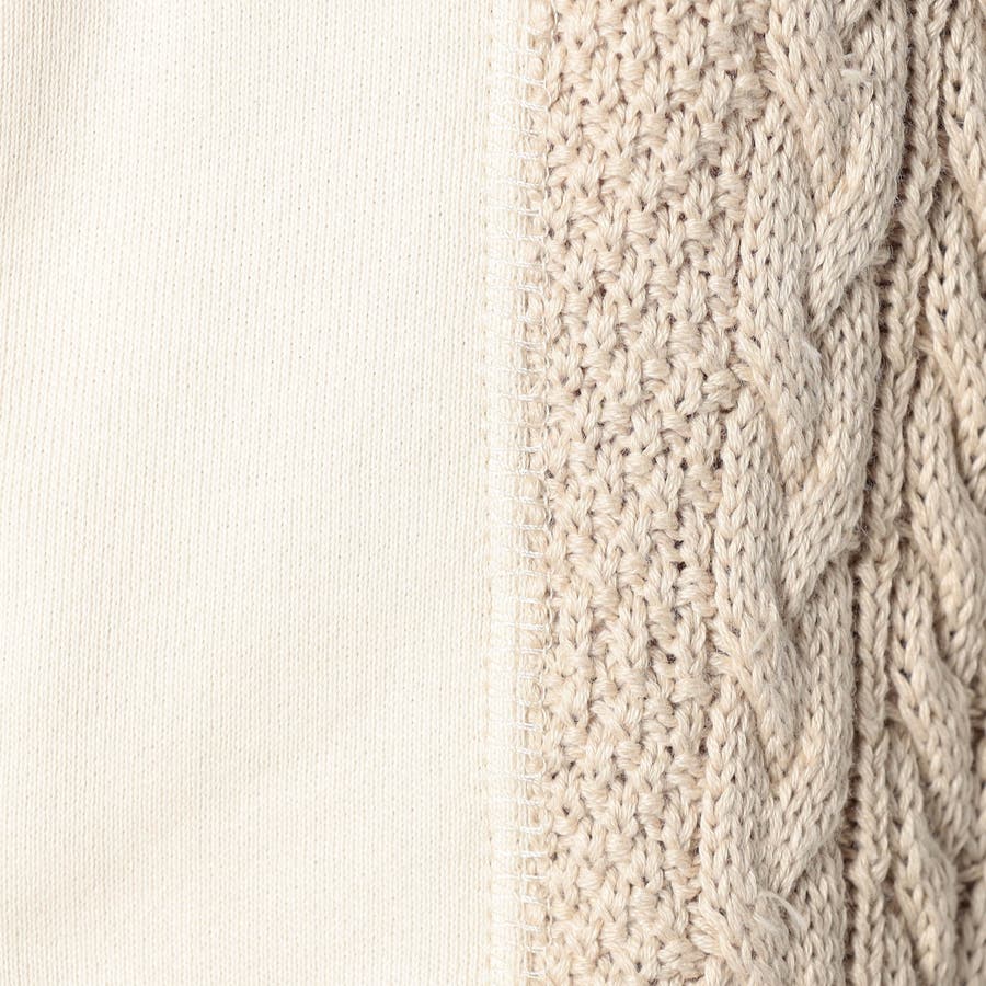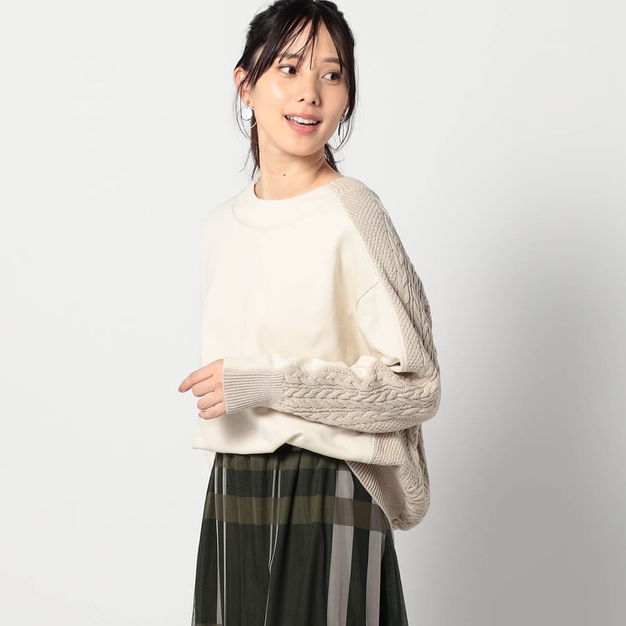 カジュアルなトレーナー素材と、ミドルゲージのニットがドッキングされたデザインです。