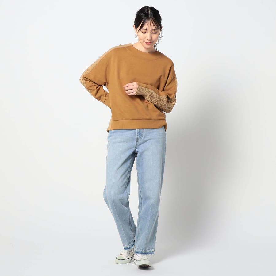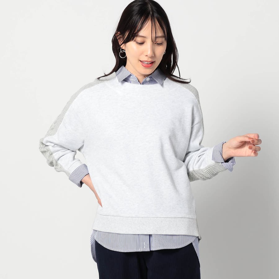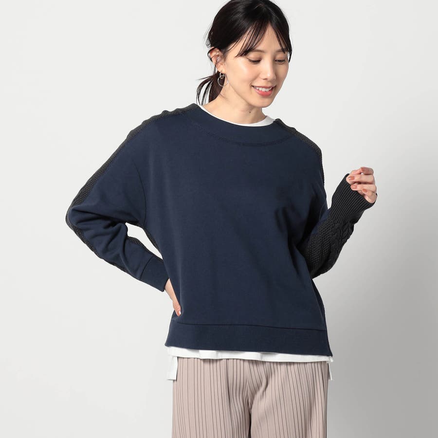 1枚でコーデが完成する、トレーナーとニットを組み合わせた、ドッキングプルオーバーです。