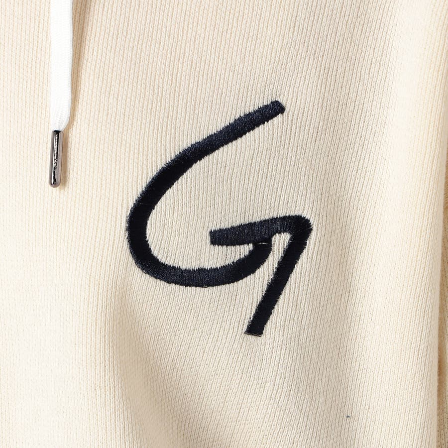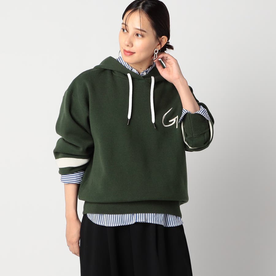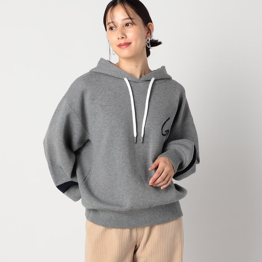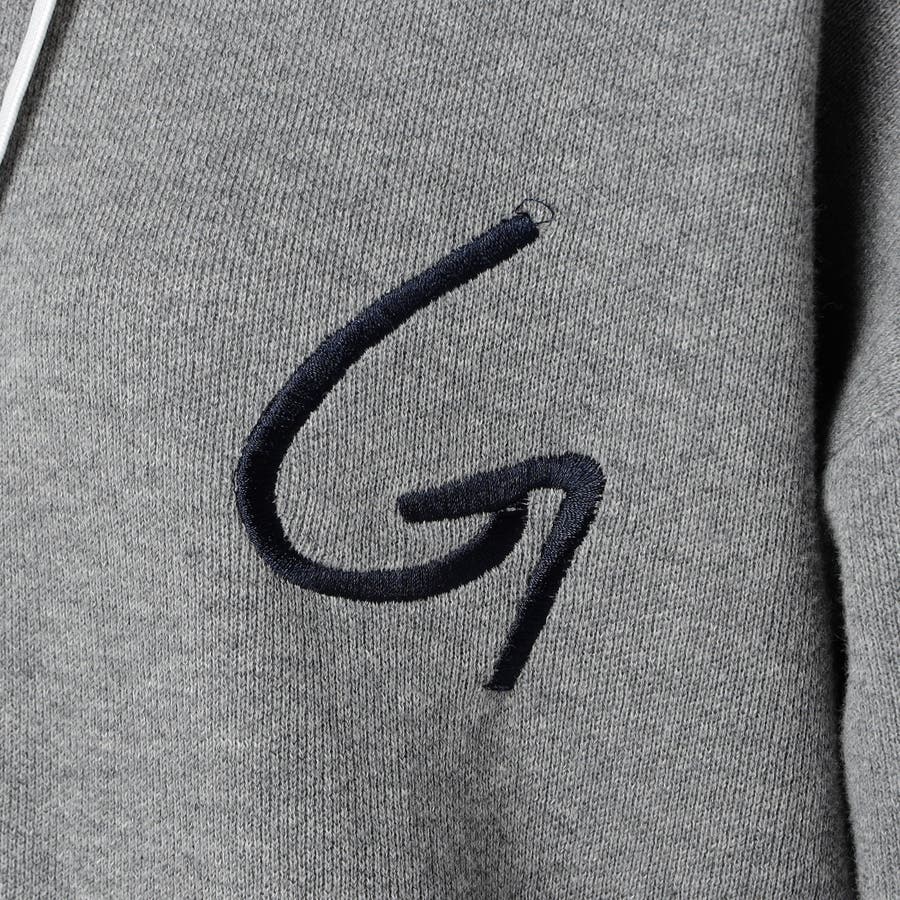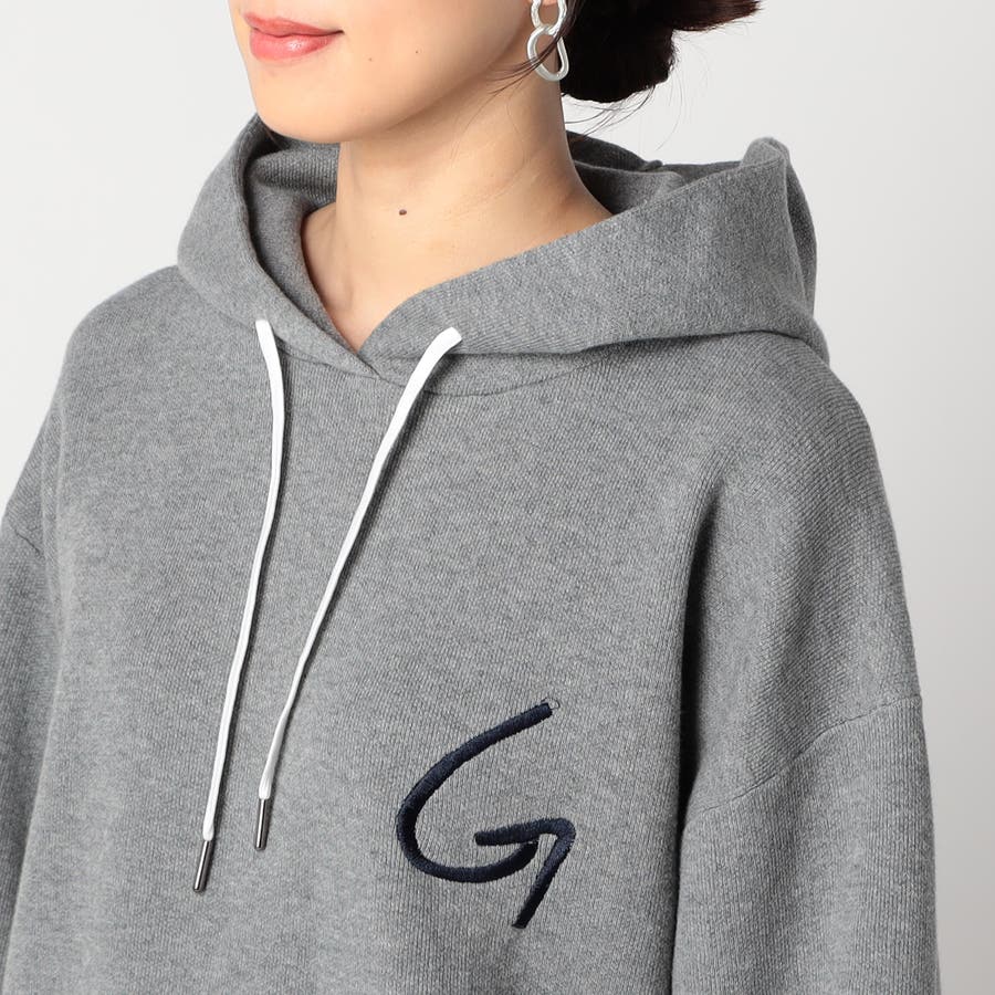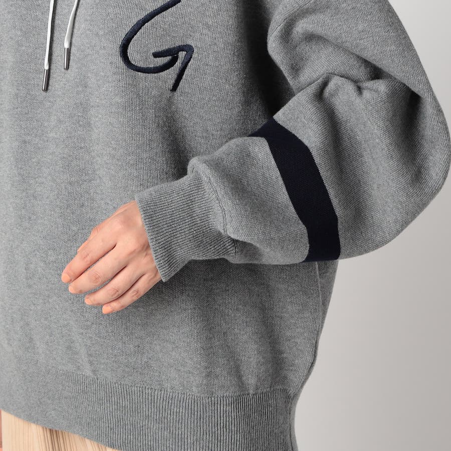 両袖のラインと、胸に入ったグランドパークの頭文字「G」が刺繍された、スウェットライクのパーカーです。
