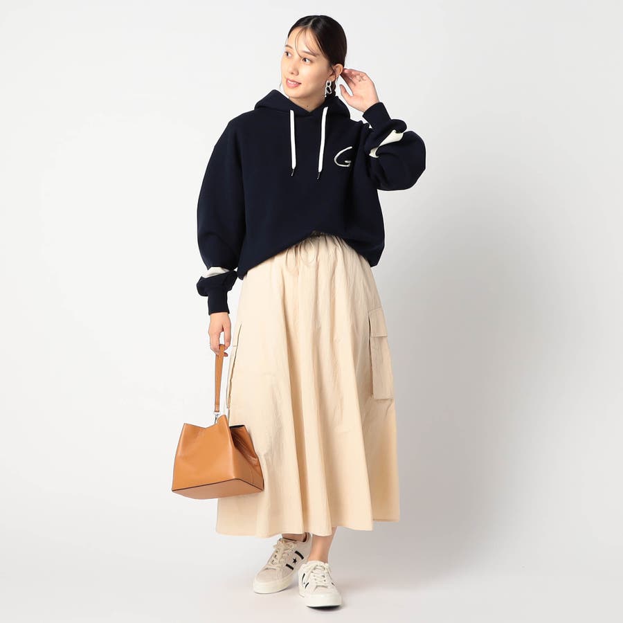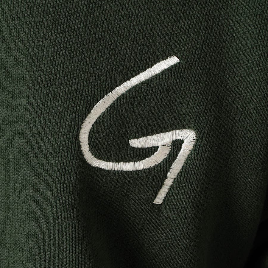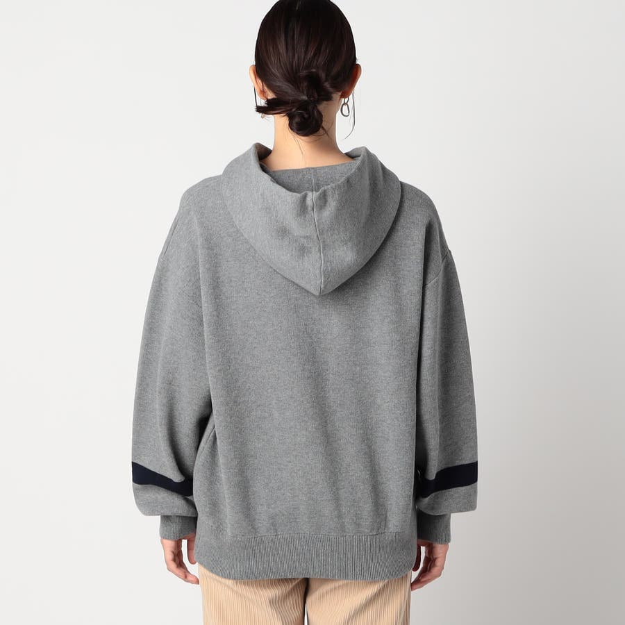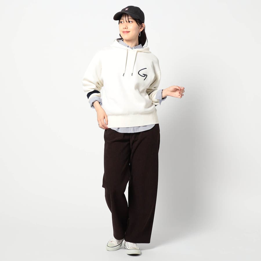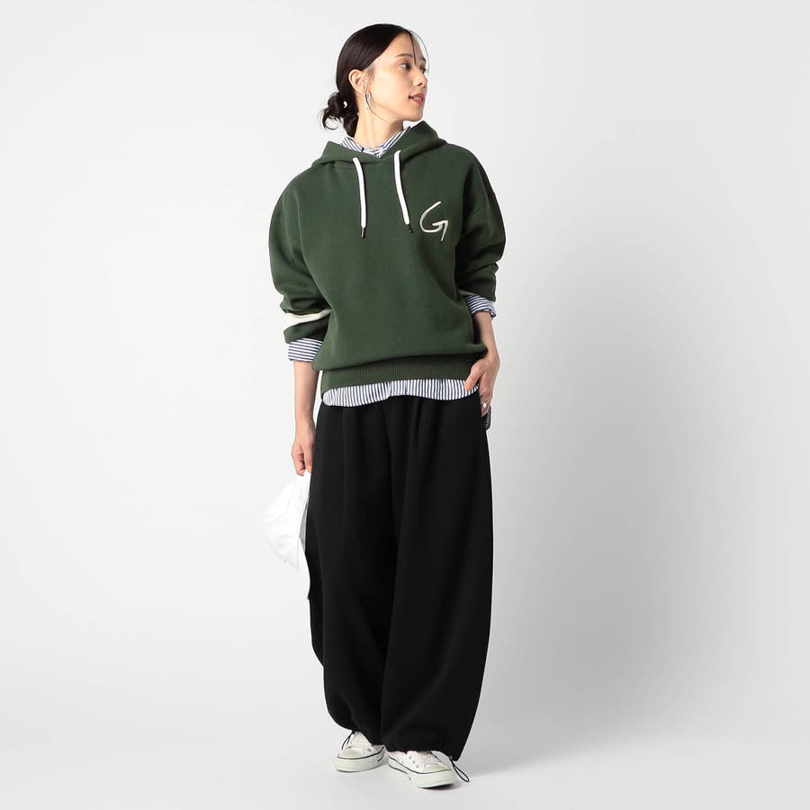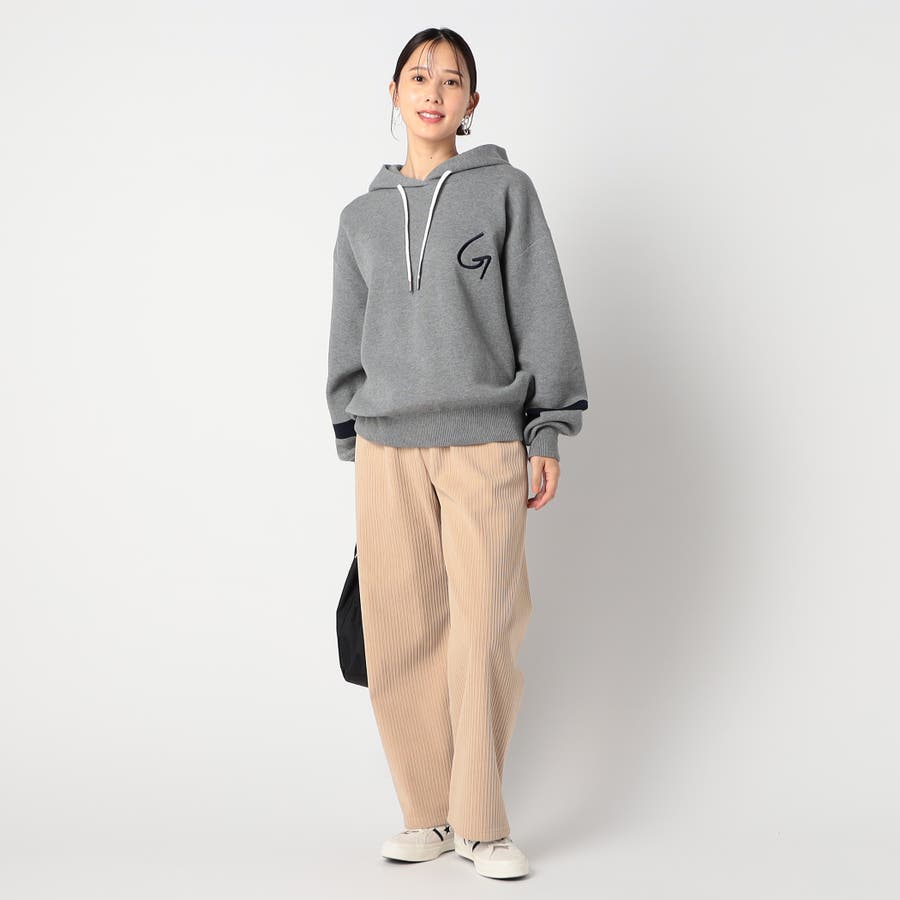 両袖のラインと、胸に入ったグランドパークの頭文字「G」が刺繍された、スウェットライクのパーカーです。
