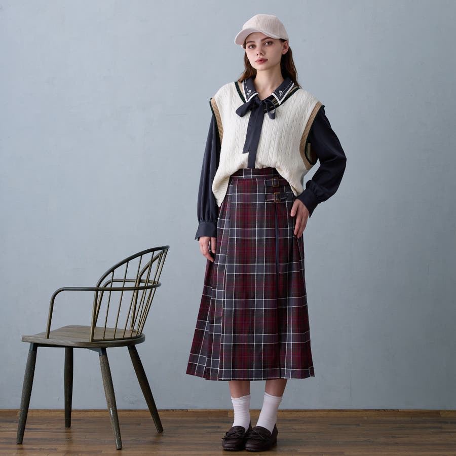 シンプルなインナースカートとプリーツのラップスカートがセットになっており様々な着こなしが楽しめるアイテムです。