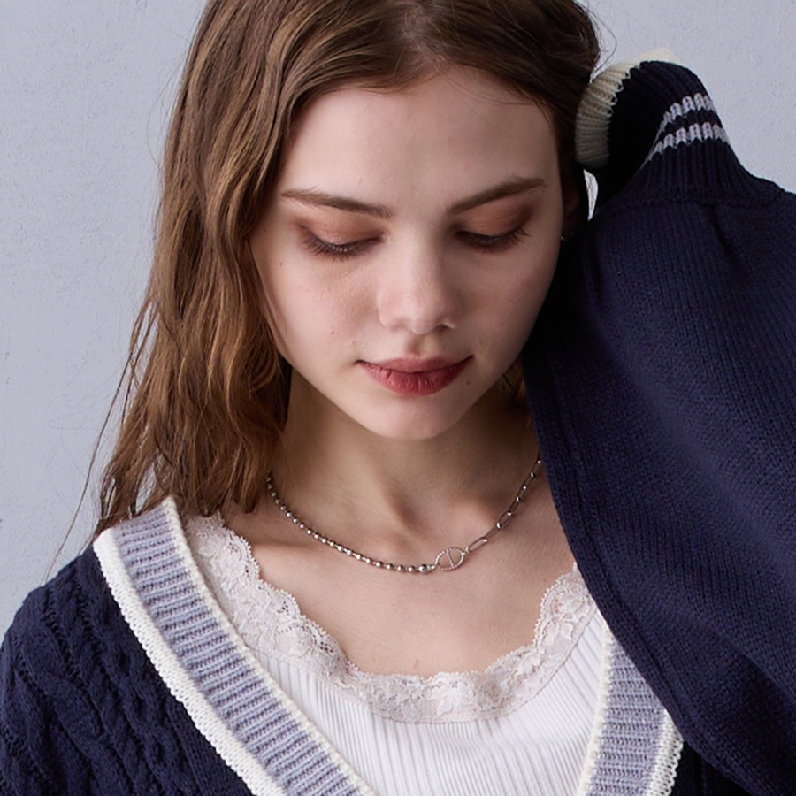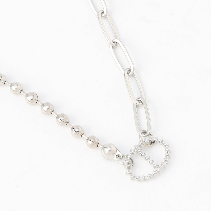 異なるデザインのチェーンを組み合わせたデザインネックレス。