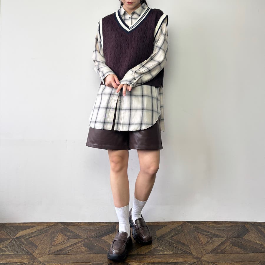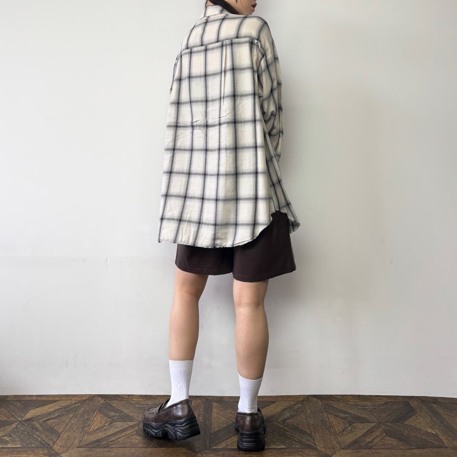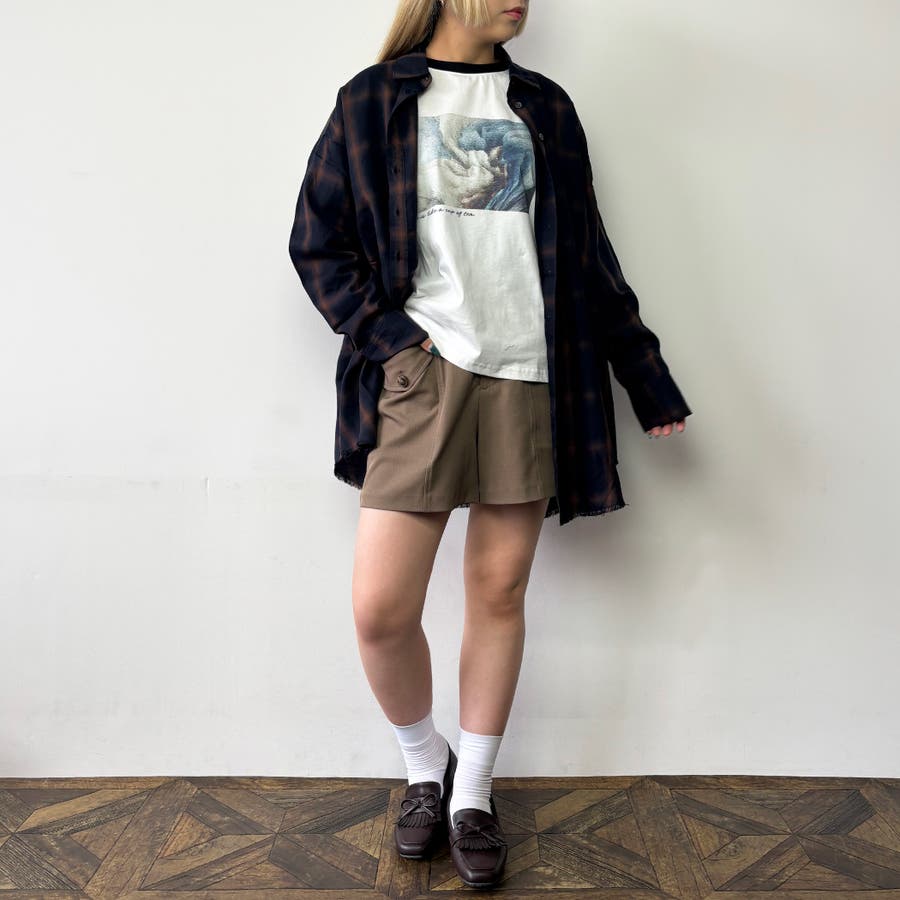 ゆったりとしたオーバーシルエットはメンズライクなスタイリングだけでなく、ショートボトムと合わせれば女の子らしいトレンドライクなコーディネートに!