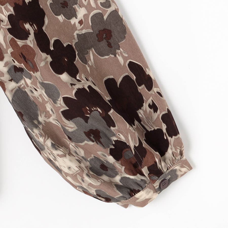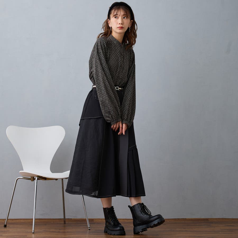 半身は裾までプリーツ加工をほどこしており揺れるプリーツがブラウスの存在感を強調してくれます。