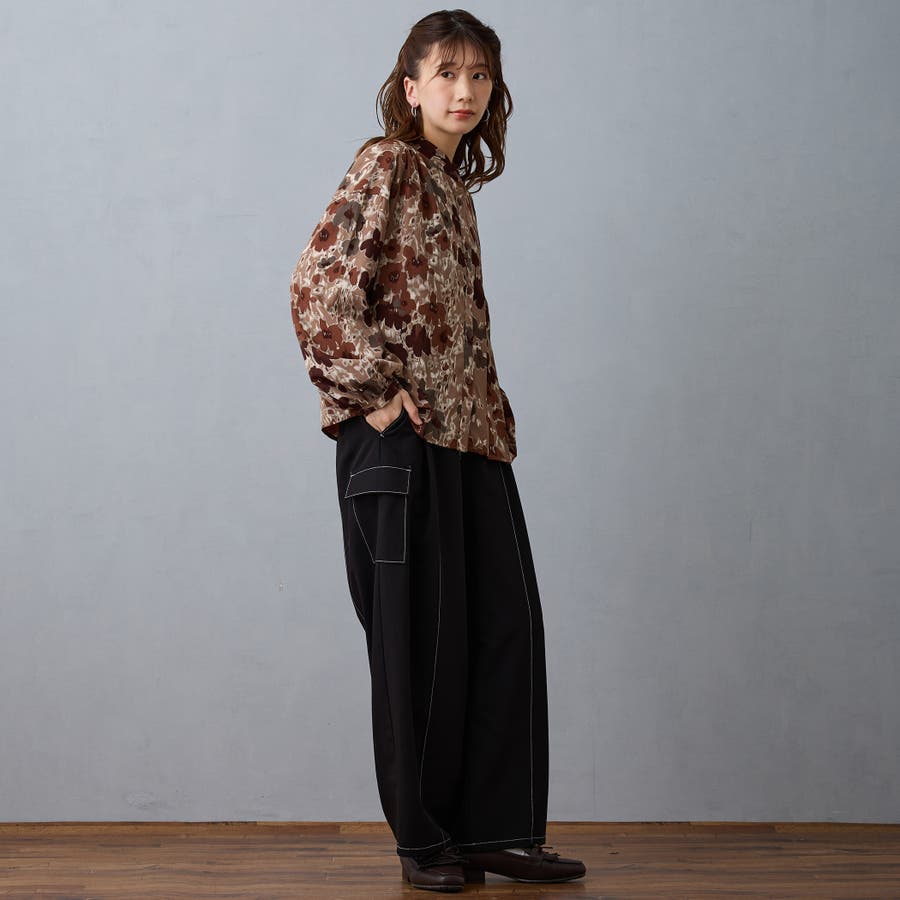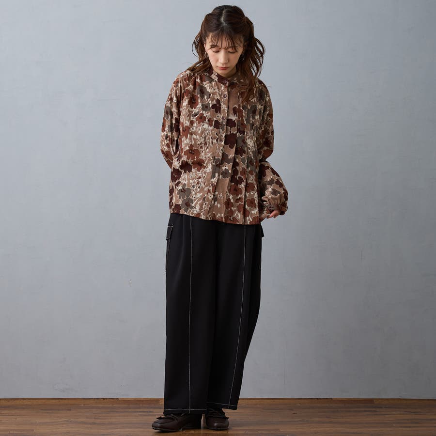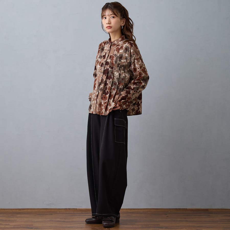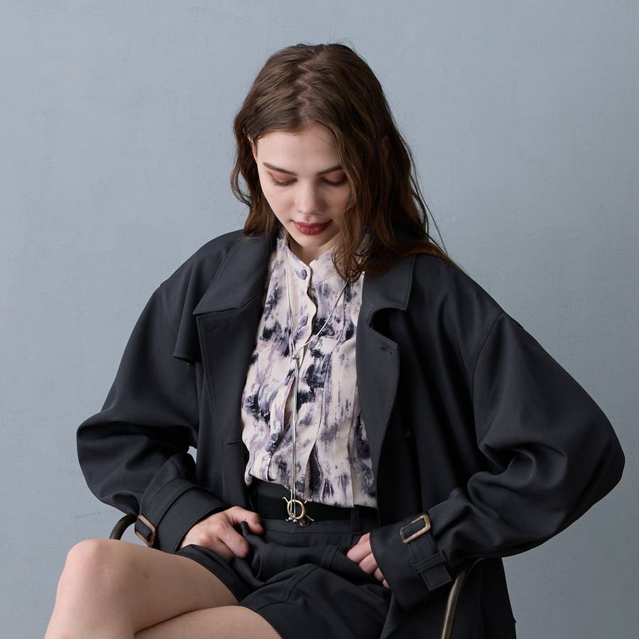 スタンドカラーに長めの着丈設定なのでアウトで着ていただくのはもちろん、シンプルなジャンスカやブイネックカーディガンとの合わせでブラウスをのぞかせるスタイリングもおすすめです。