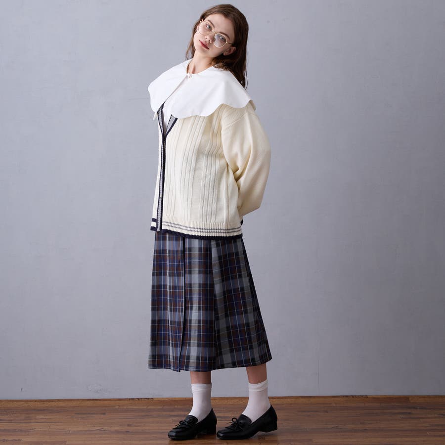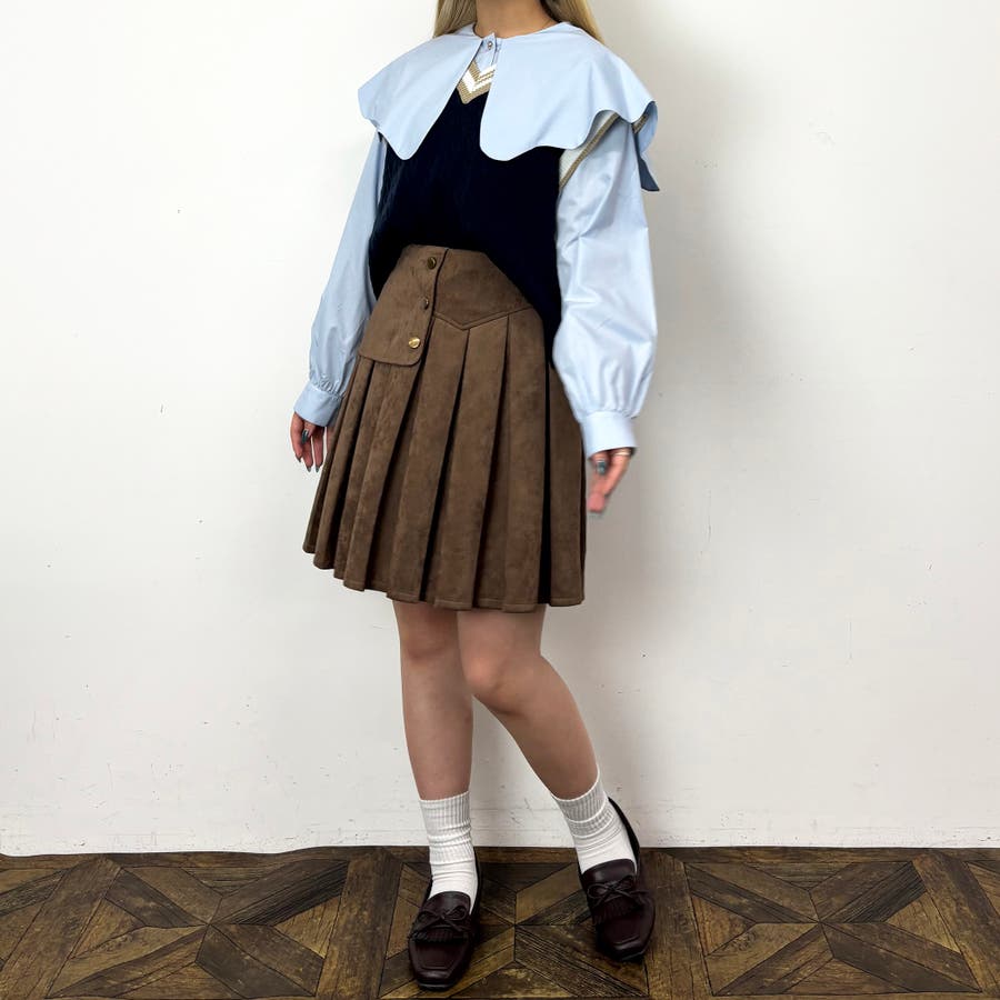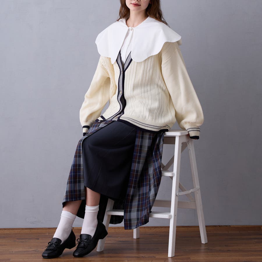 第一釦のデザイン釦がレイヤードしたときにちらっと見えるのもかわいいアイテムです。