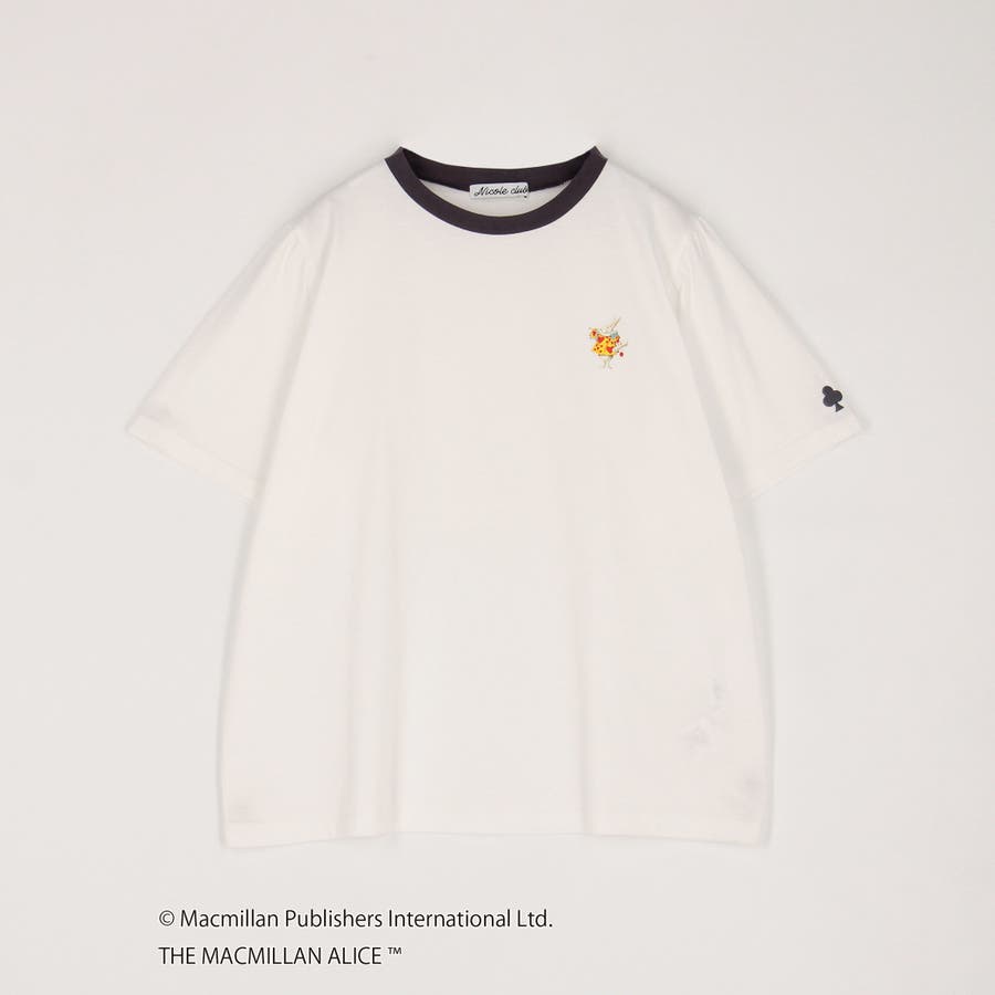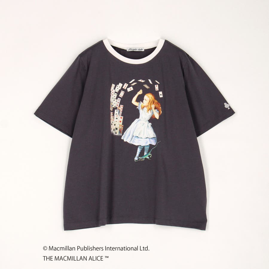 アリスの表情や色合い等、本の中の世界観を再現したデザインで袖口にはブランド名「ニコルクラブ」にちなんでクラブの刺繍が施されています。