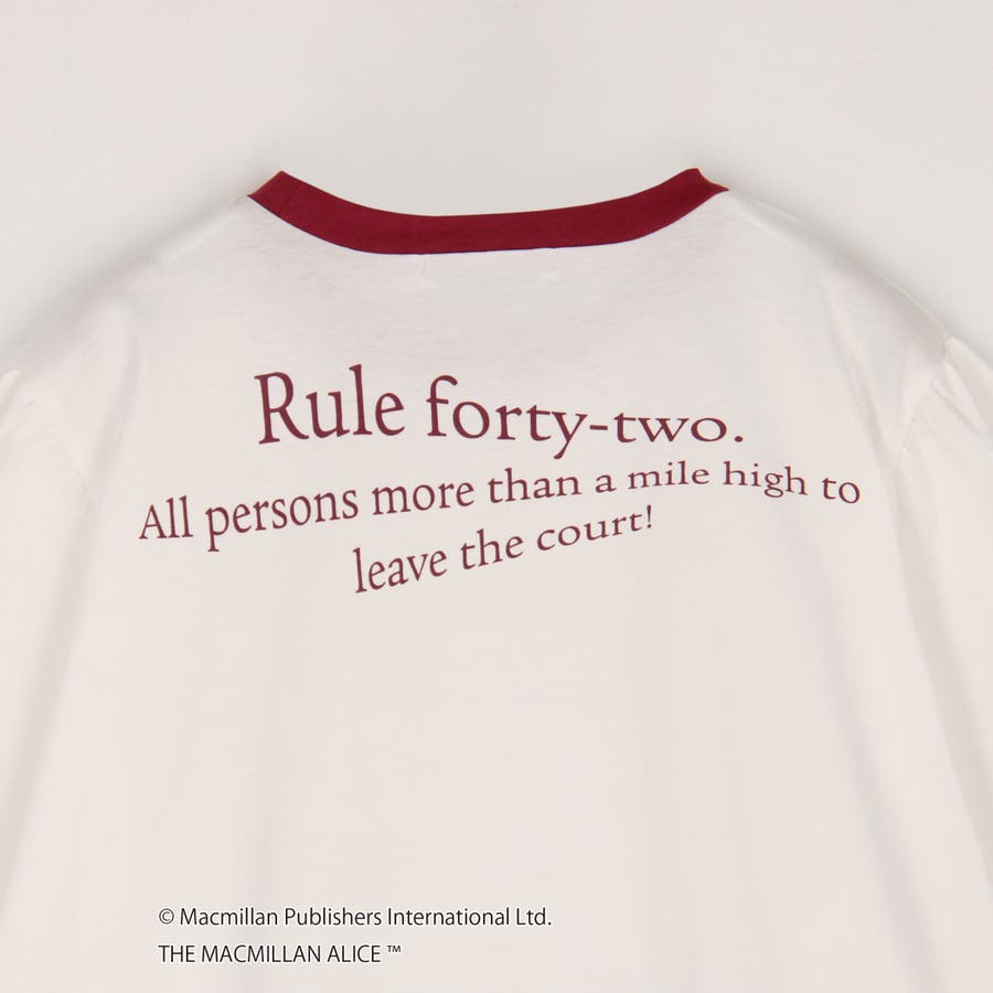背面には不思議の国のアリスより法廷でのハートの王様のセリフがプリントされています。