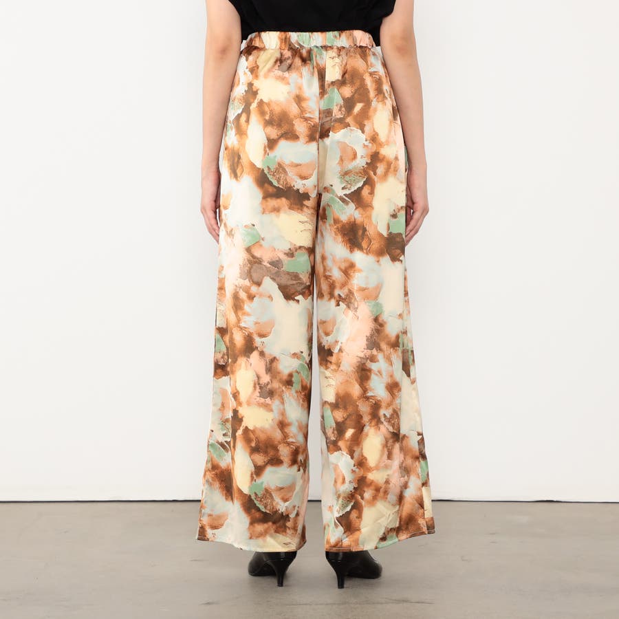 ◆デザインは秋らしい配色にぼかしをかけたプリントワイドパンツ。ウエストはゴム仕様。ほど良いワイド感とぼかしプリントが大人を漂わせます。