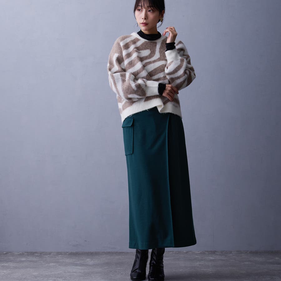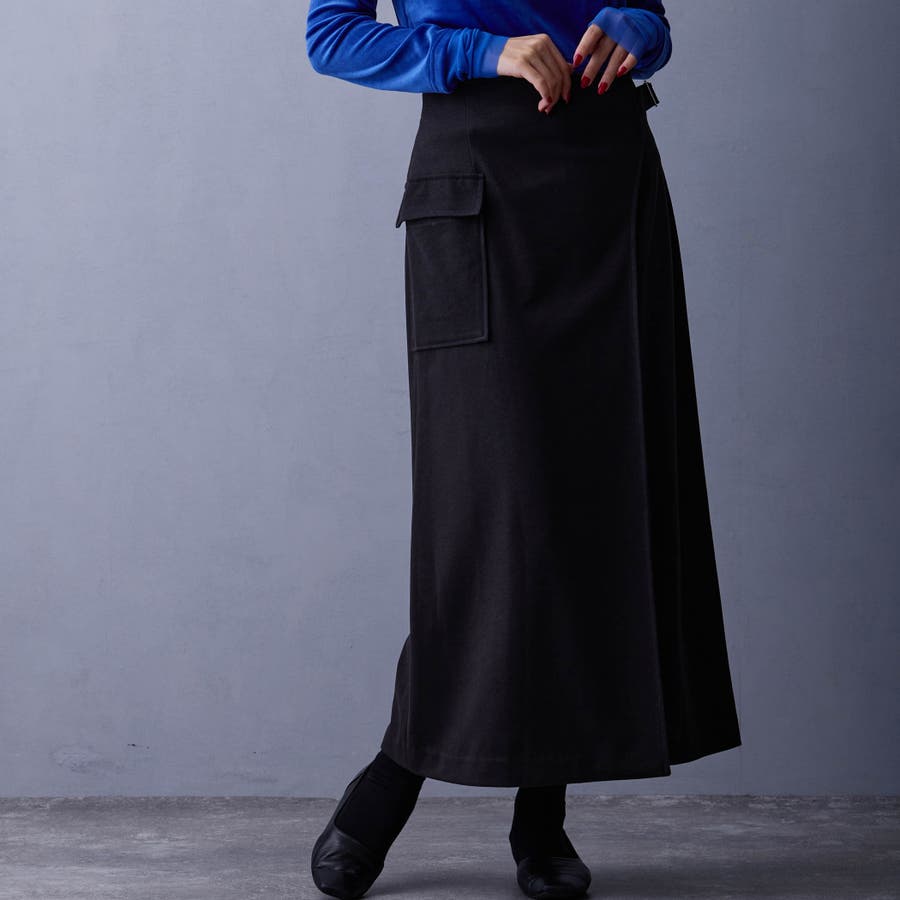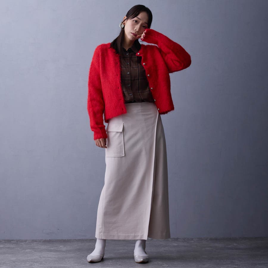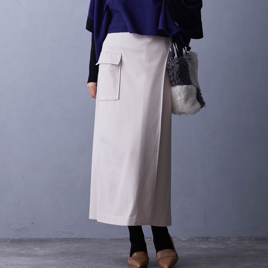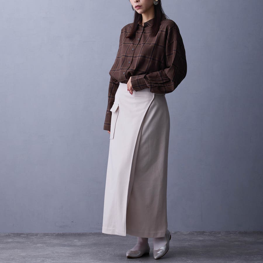ラップ風のデザインが特徴のタイトスカート。