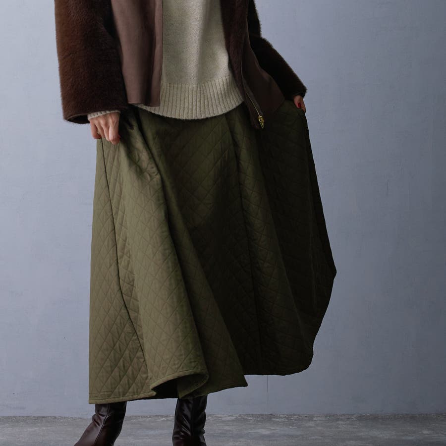 シーズンらしいキルティングのスカートは、着心地も見た目も暖かさのある素材感。