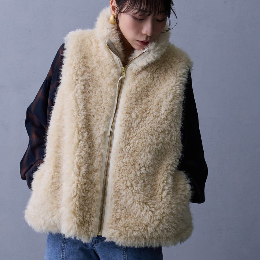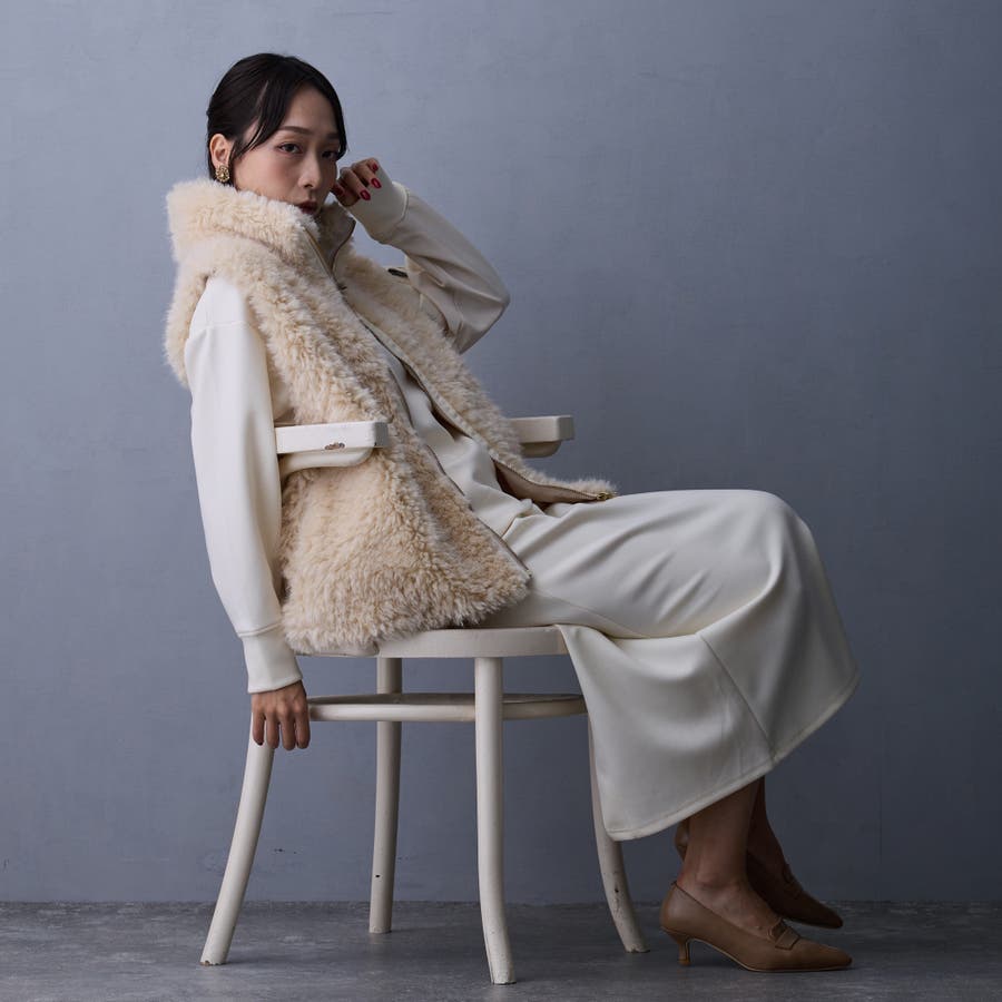 毛足が長いフェイクファーで、存在感がありながらも上品な印象に。