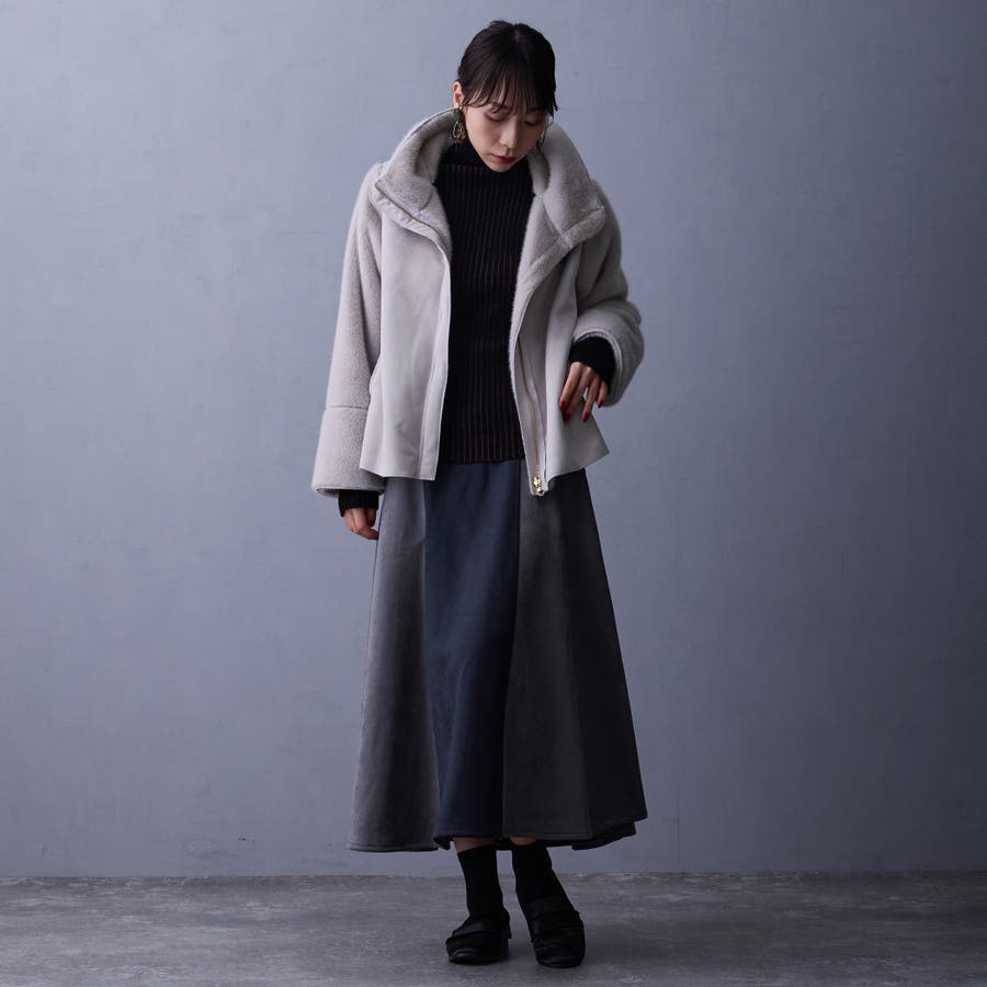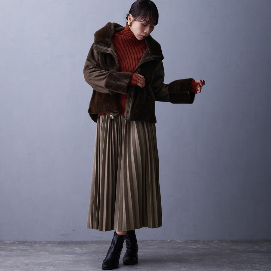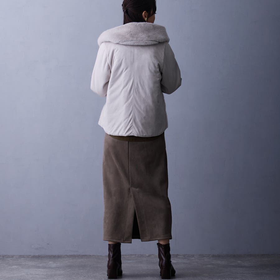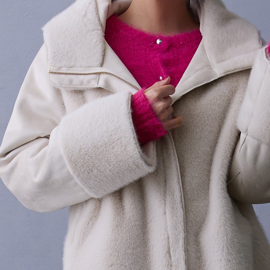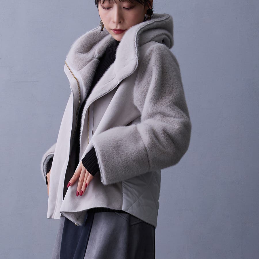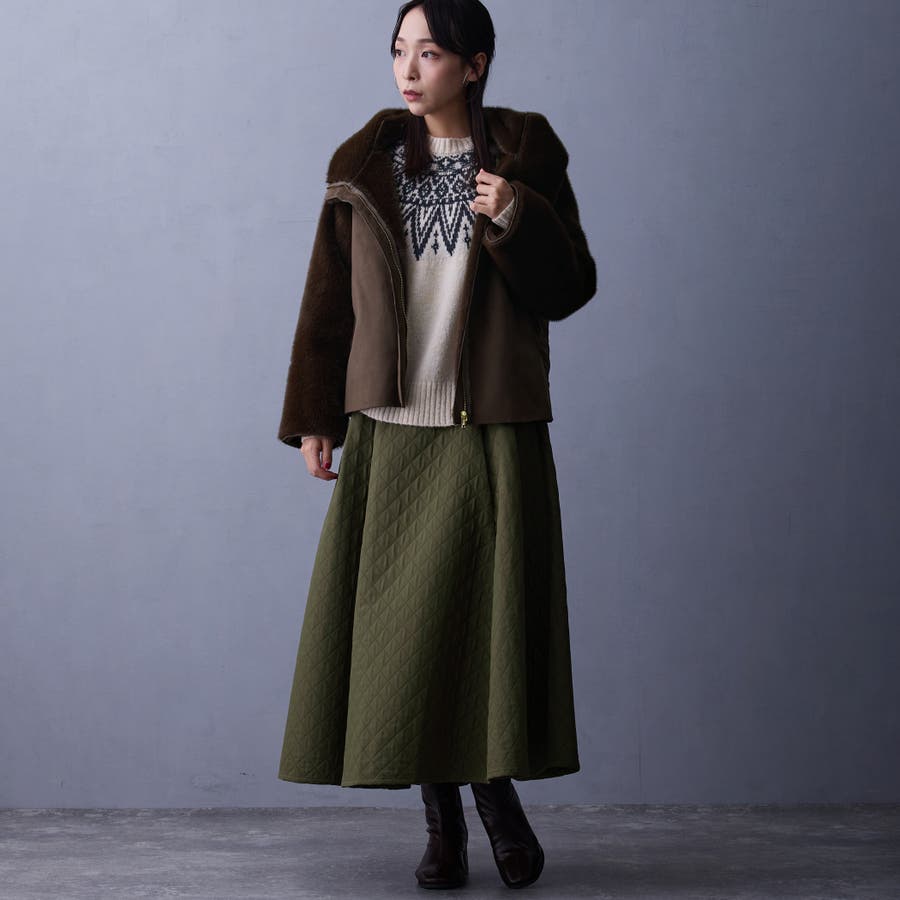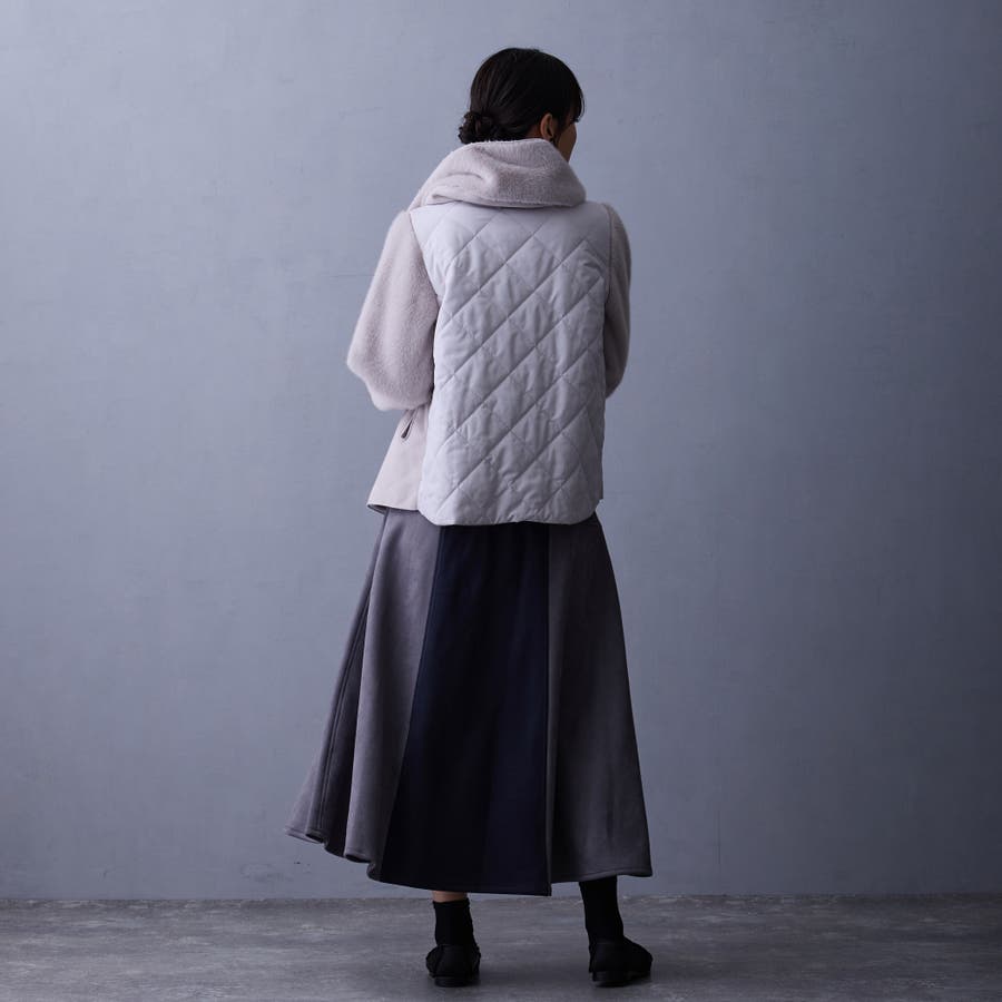 フェイク素材のファーとムートンとキルティングの異素材使い